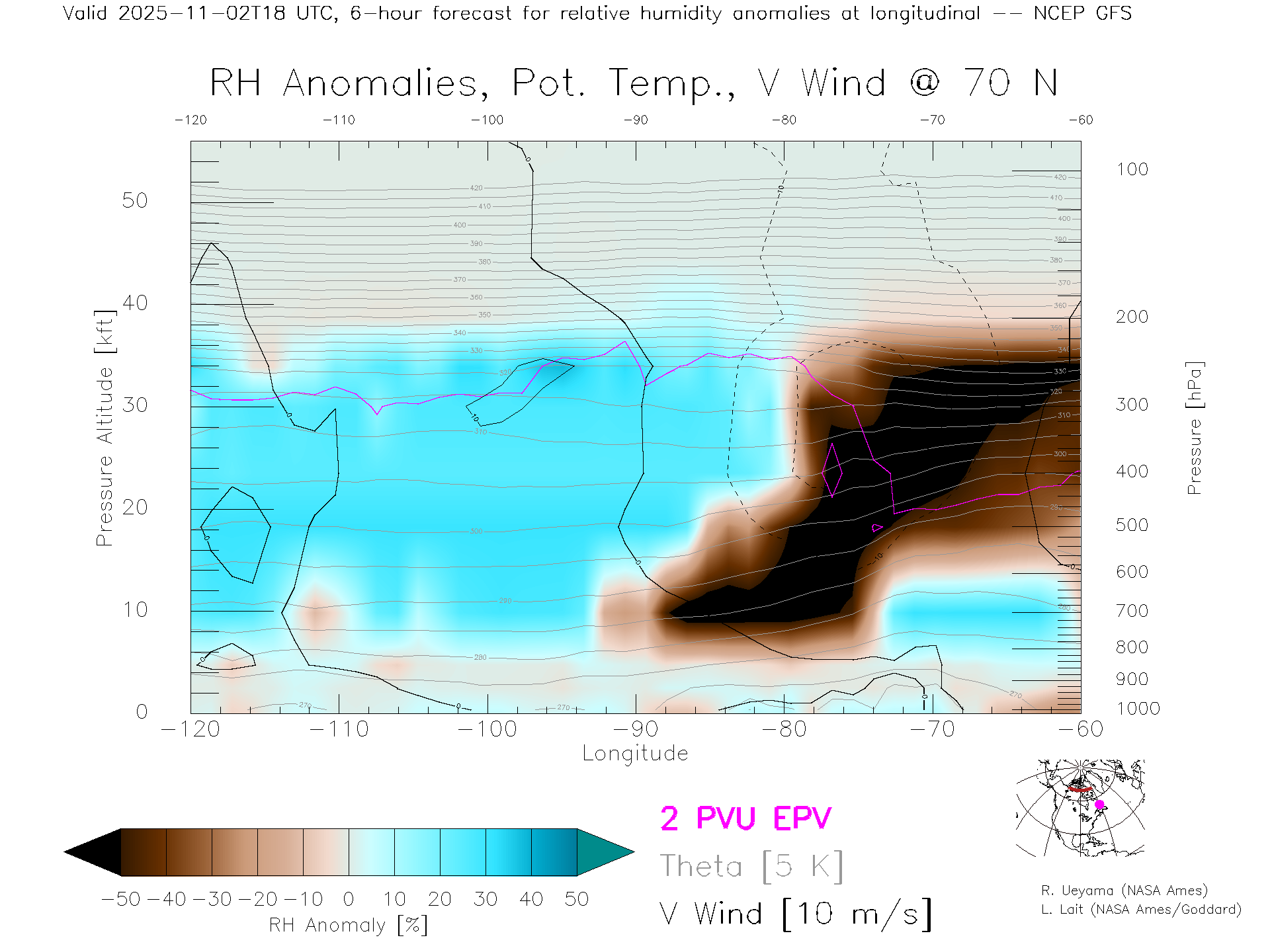 NCEP GFS Forecast Rel. Hum. X-Section (70 N)