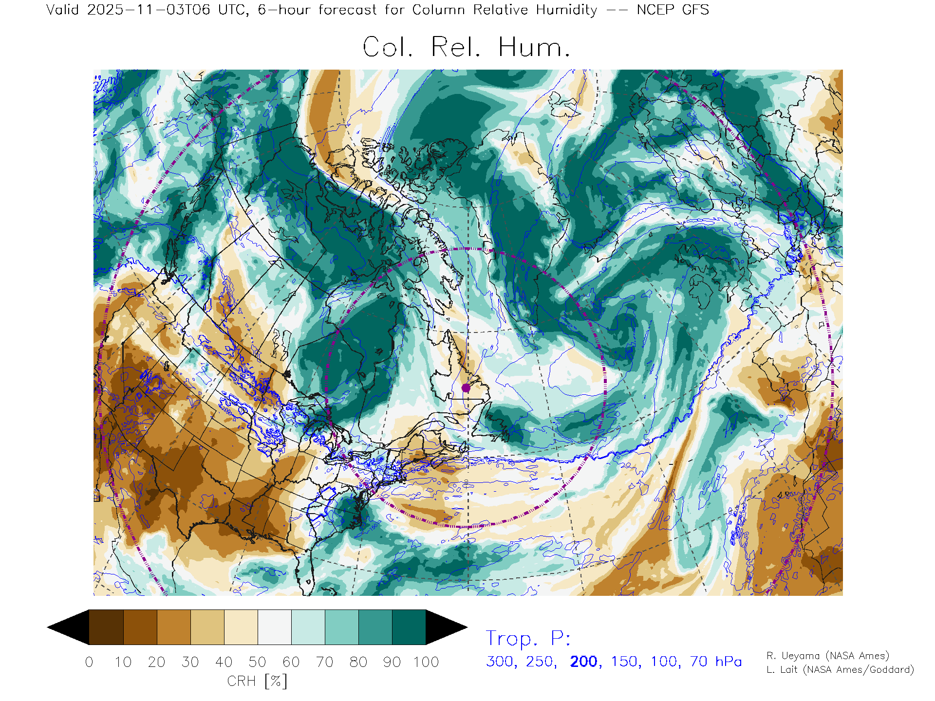 NCEP GFS Forecast Column Rel. Humidity