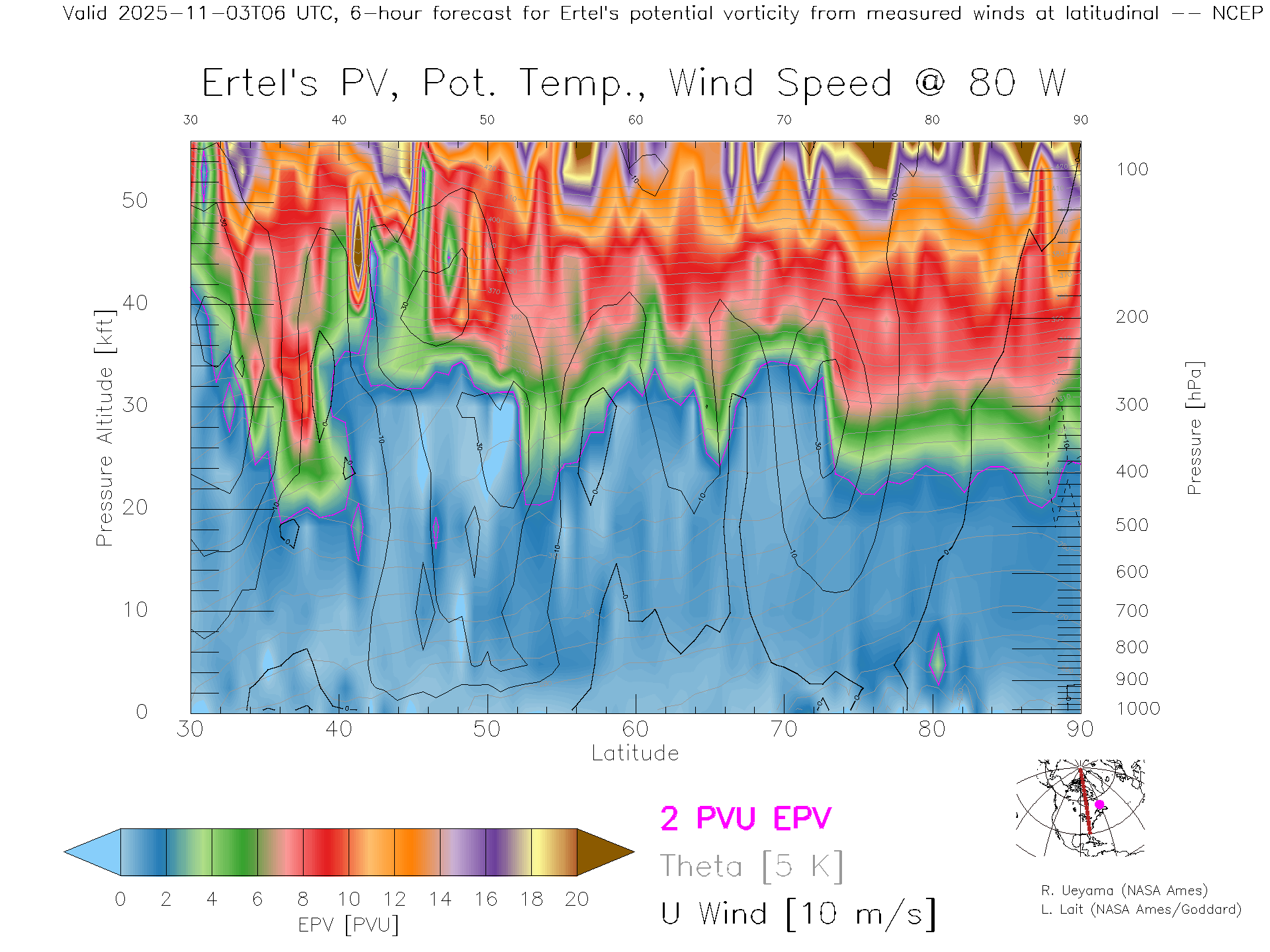 NCEP GFS Forecast PV X-Section (80 W)