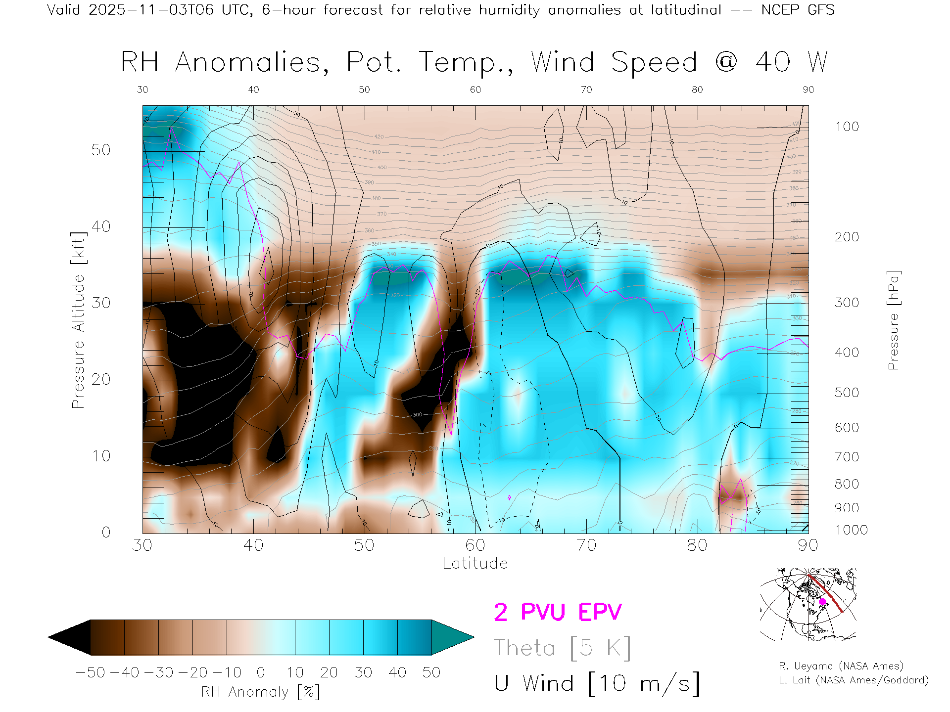 NCEP GFS Forecast Rel. Hum. X-Section (40 W)