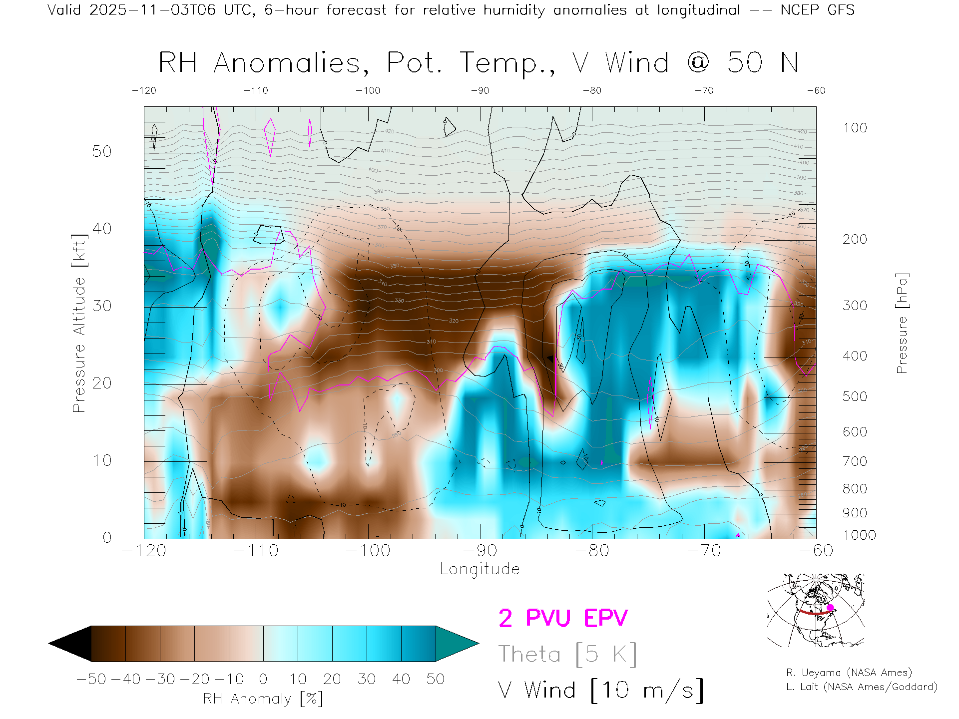 NCEP GFS Forecast Rel. Hum. X-Section (50 N)