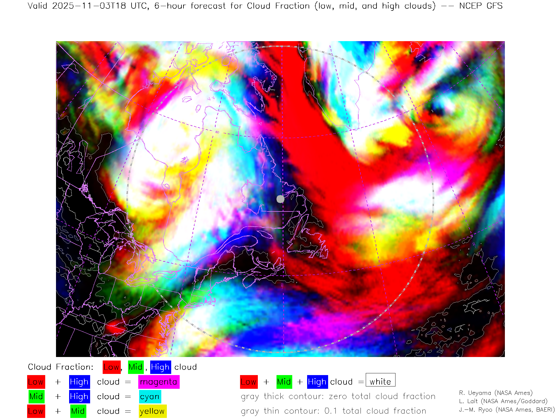 NCEP GFS Forecast Low-, Mid- and High-level Cloud Fraction
