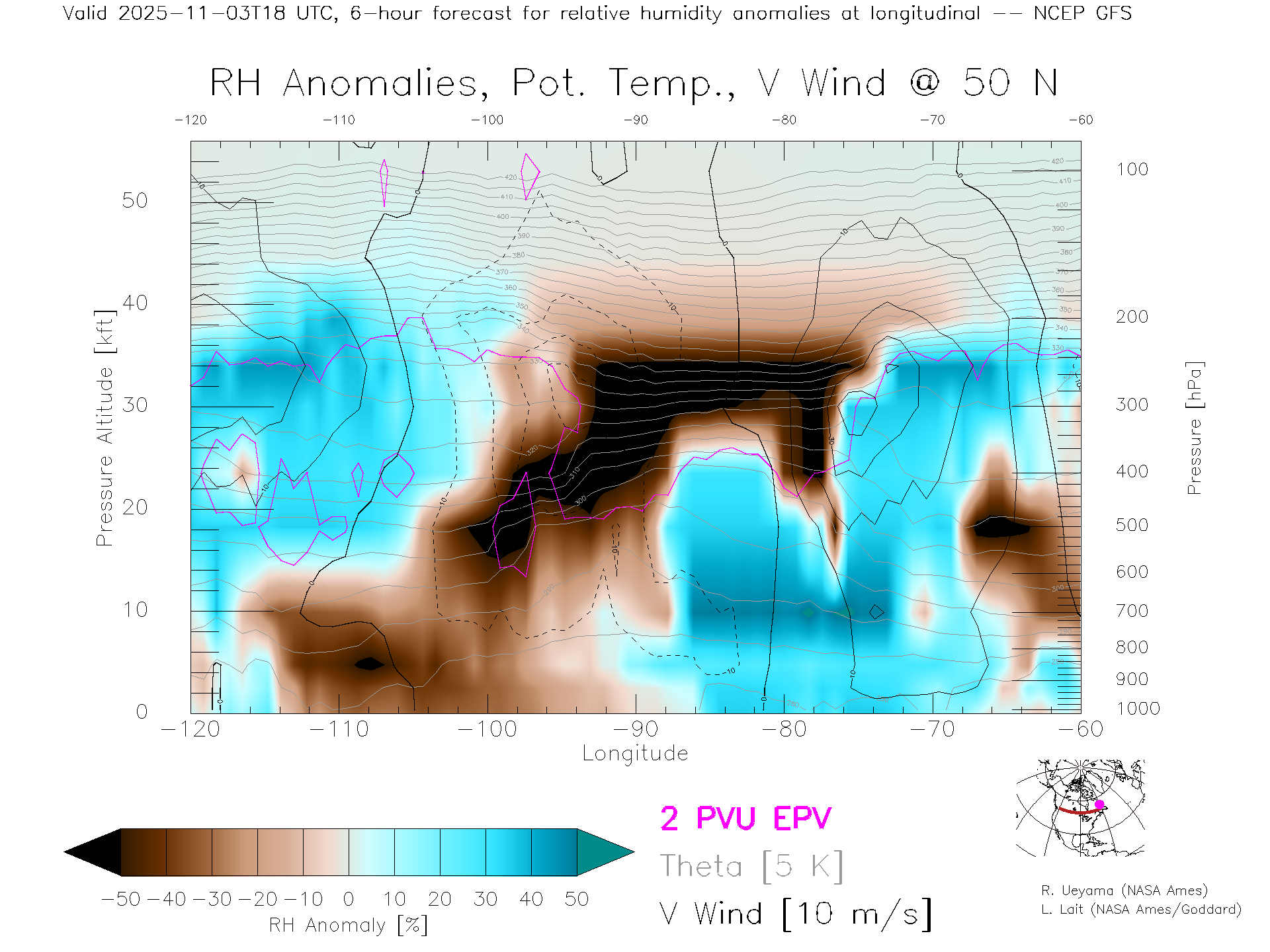 NCEP GFS Forecast Rel. Hum. X-Section (50 N)