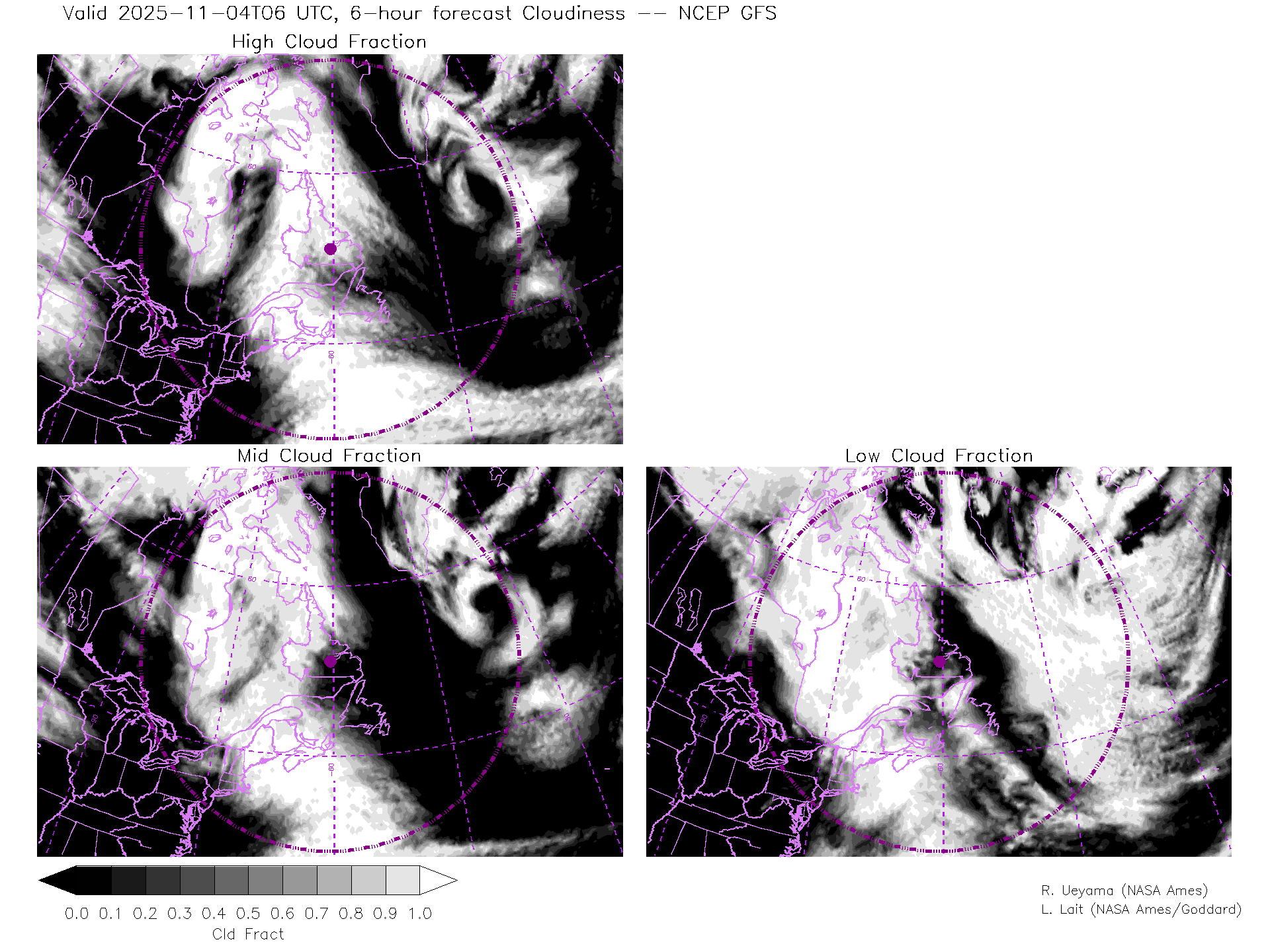 NCEP GFS Forecast Cloud Fraction (High, Mid, Low)