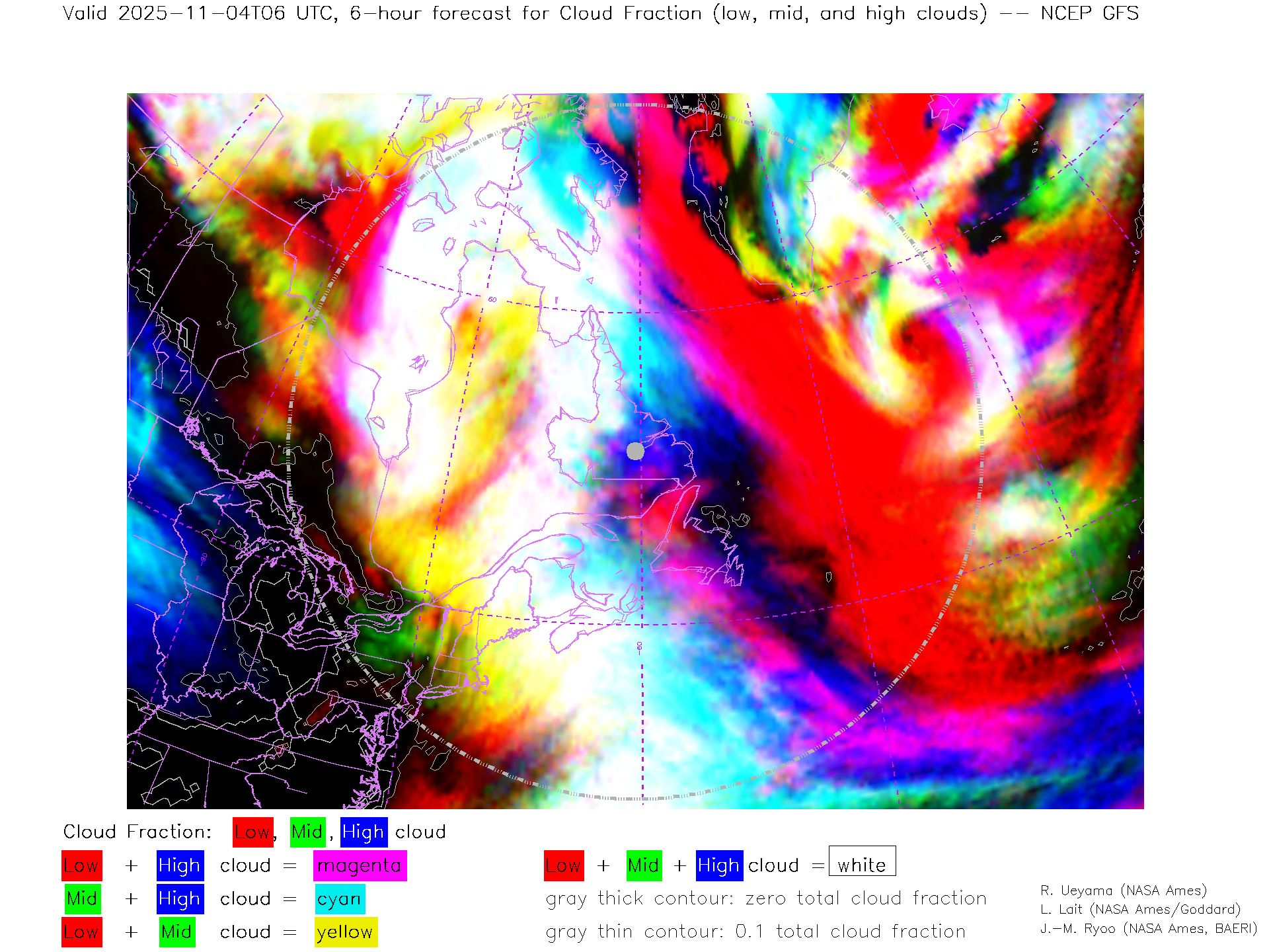 NCEP GFS Forecast Low-, Mid- and High-level Cloud Fraction