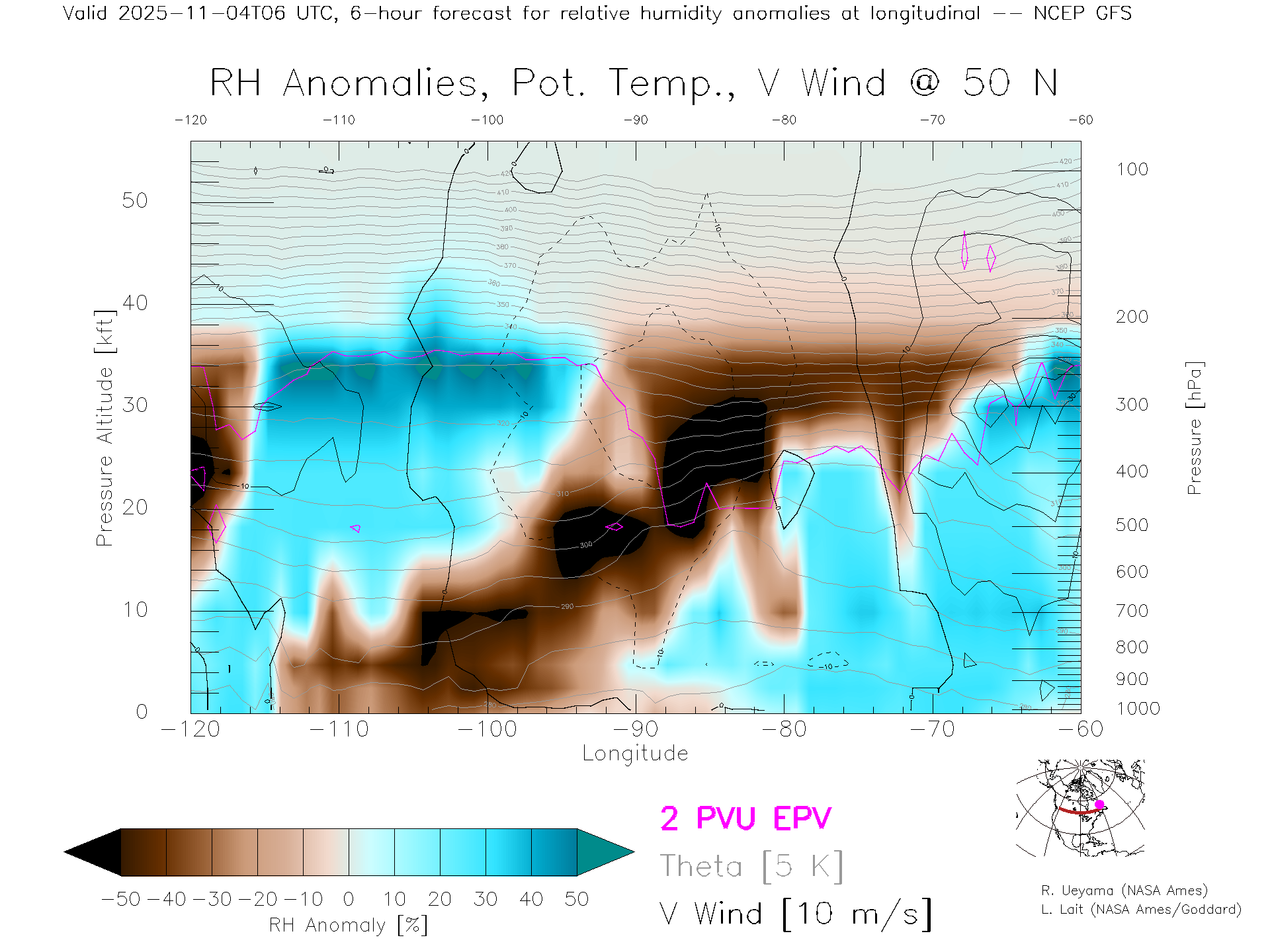 NCEP GFS Forecast Rel. Hum. X-Section (50 N)