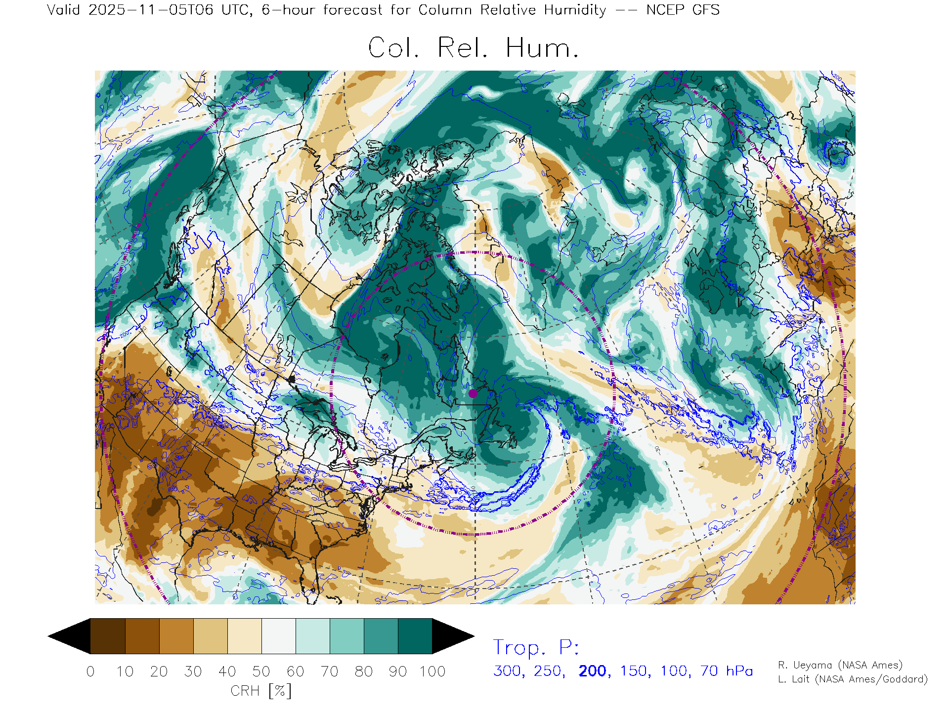 NCEP GFS Forecast Column Rel. Humidity