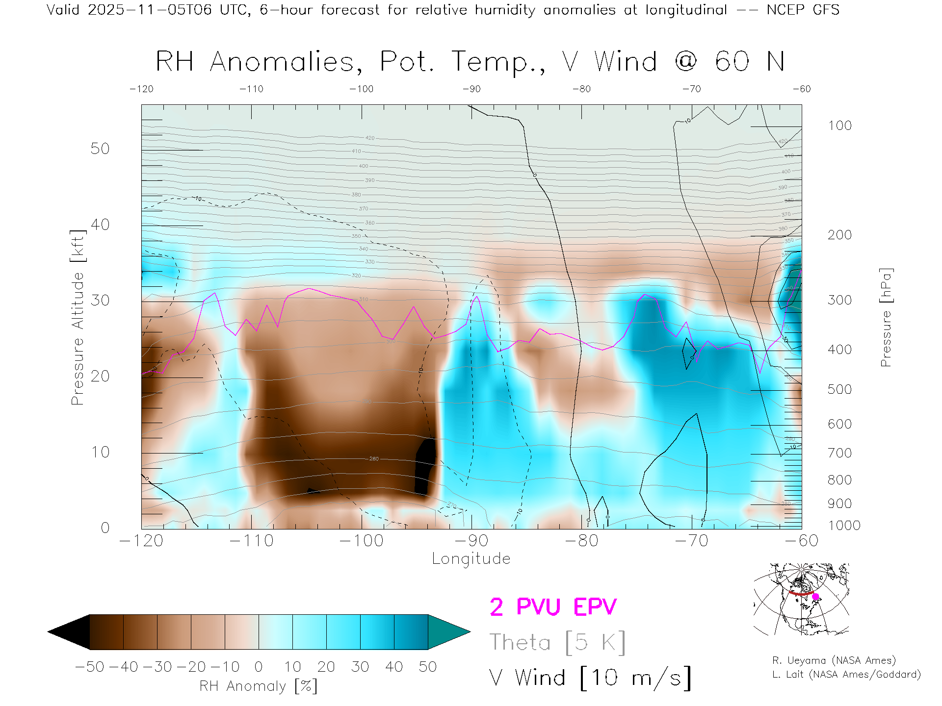 NCEP GFS Forecast Rel. Hum. X-Section (60 N)