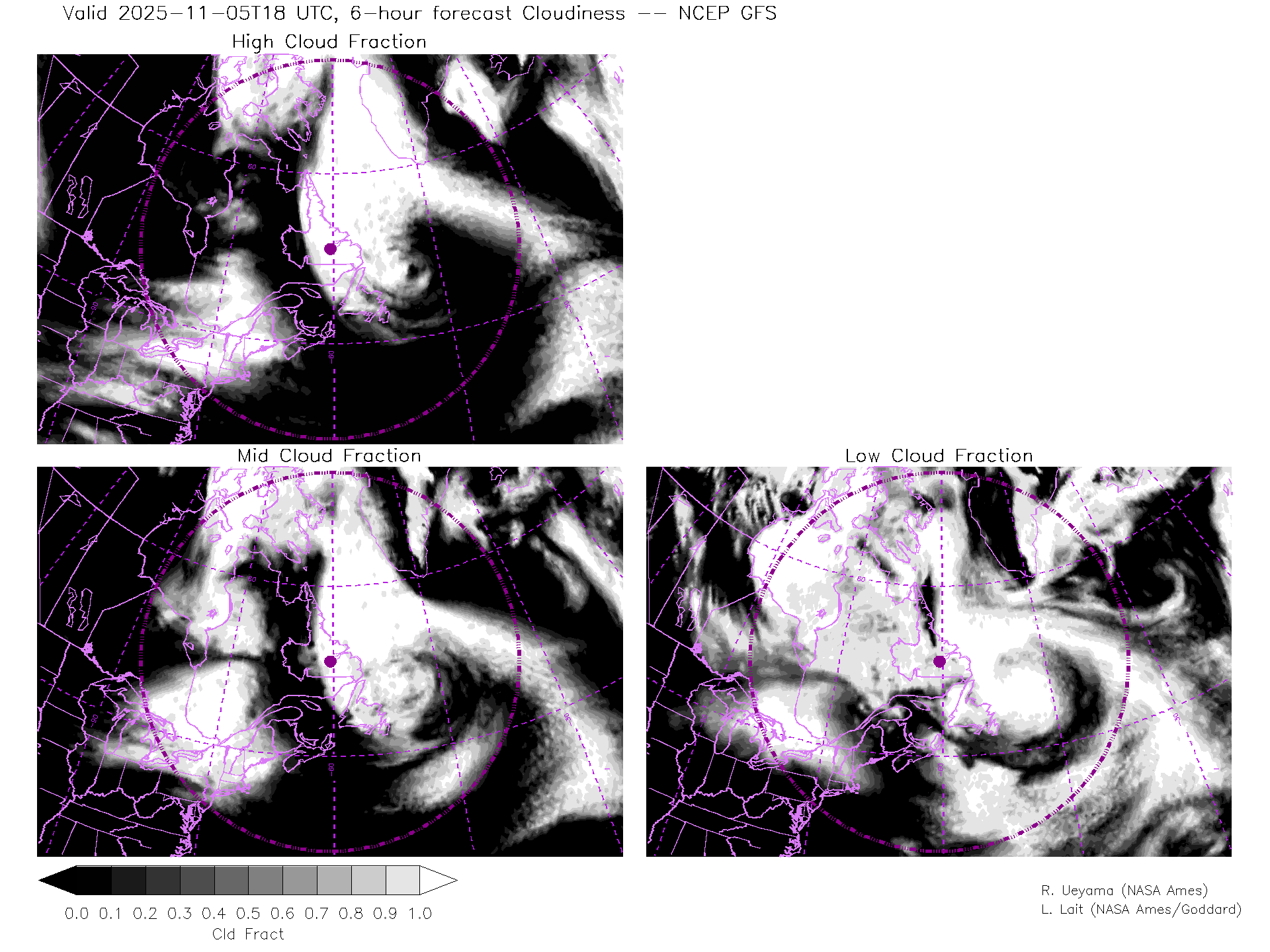 NCEP GFS Forecast Cloud Fraction (High, Mid, Low)