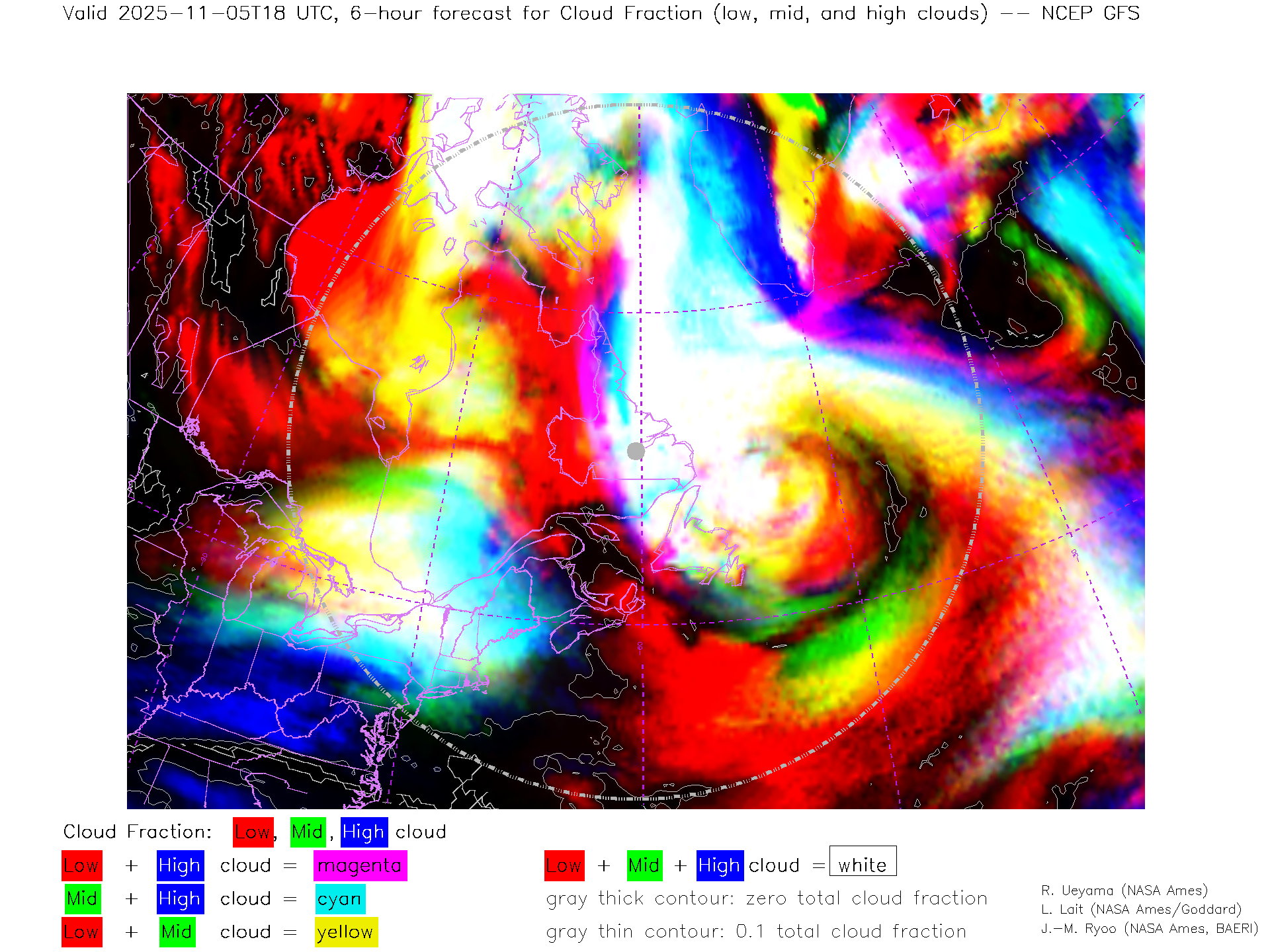 NCEP GFS Forecast Low-, Mid- and High-level Cloud Fraction