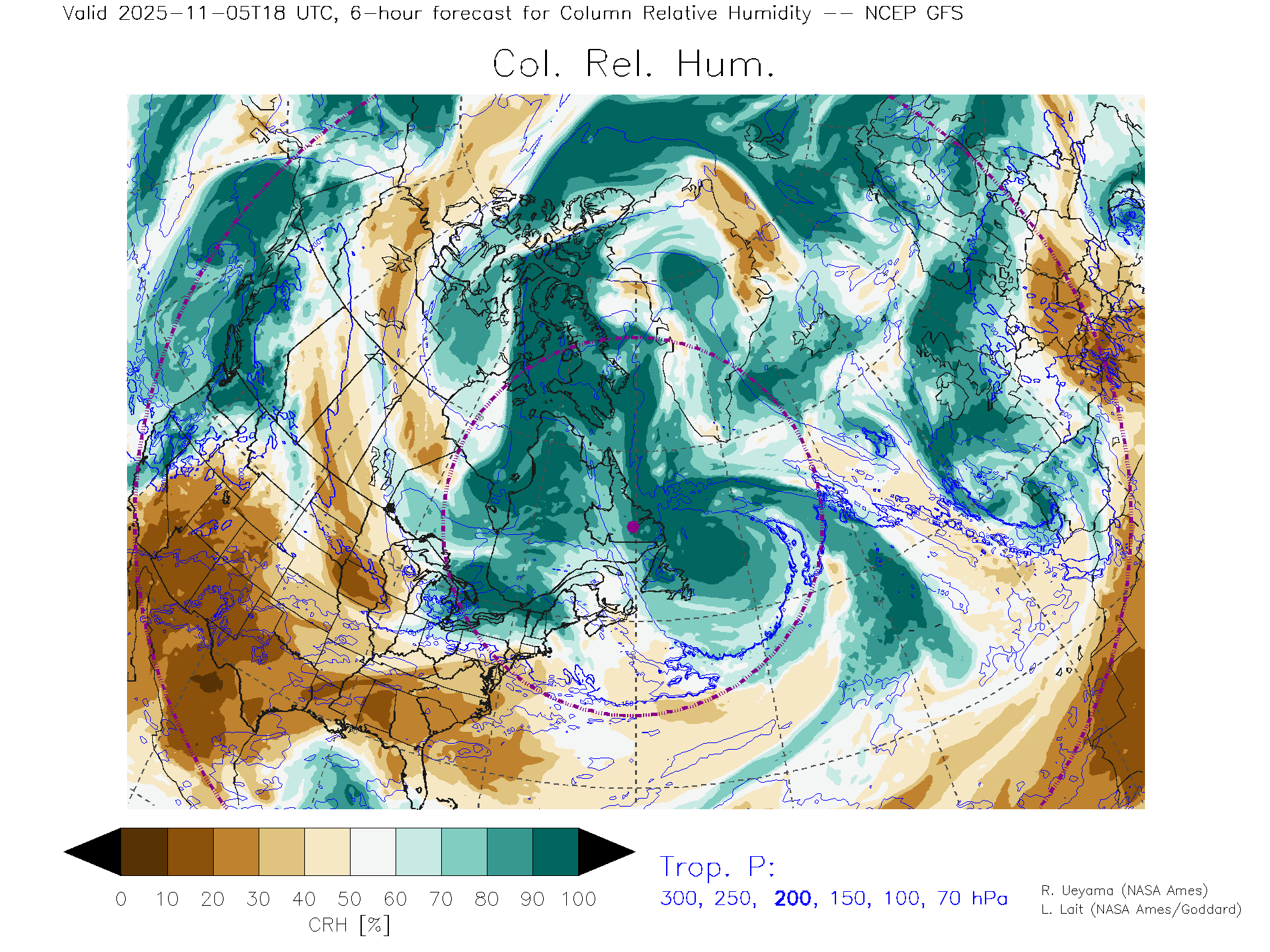 NCEP GFS Forecast Column Rel. Humidity