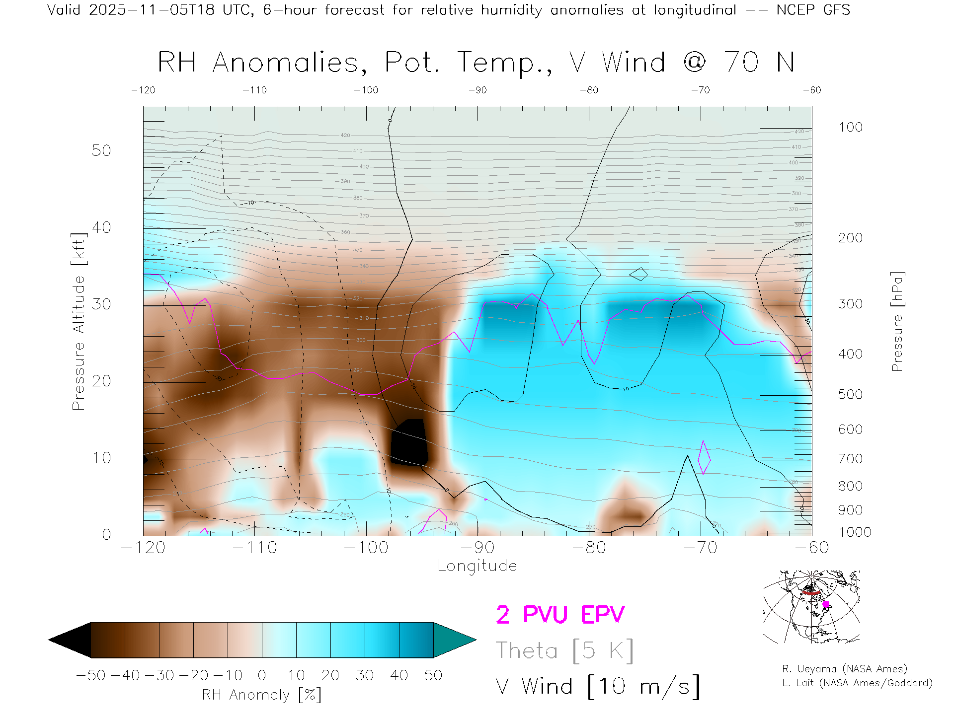 NCEP GFS Forecast Rel. Hum. X-Section (70 N)