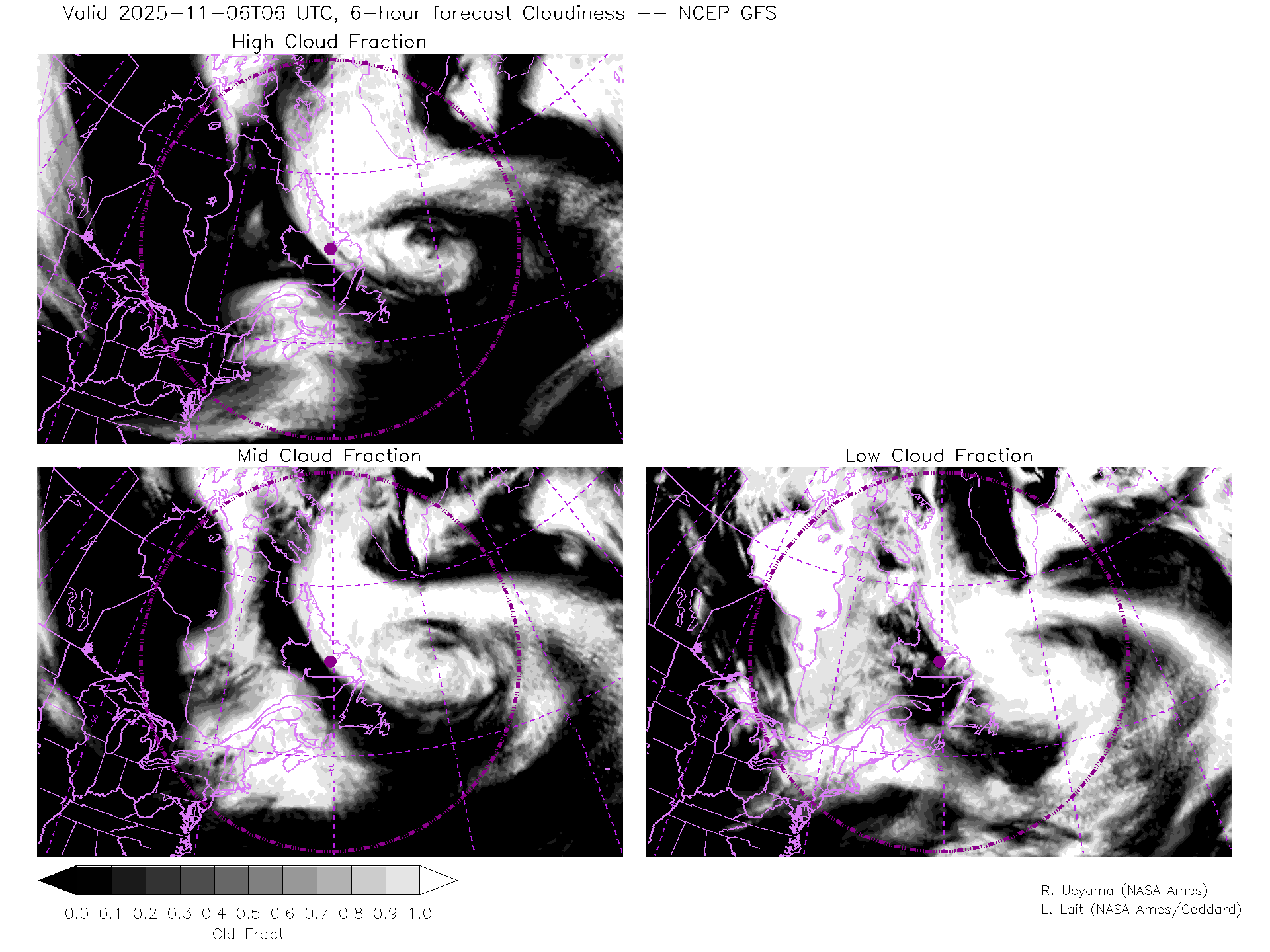 NCEP GFS Forecast Cloud Fraction (High, Mid, Low)