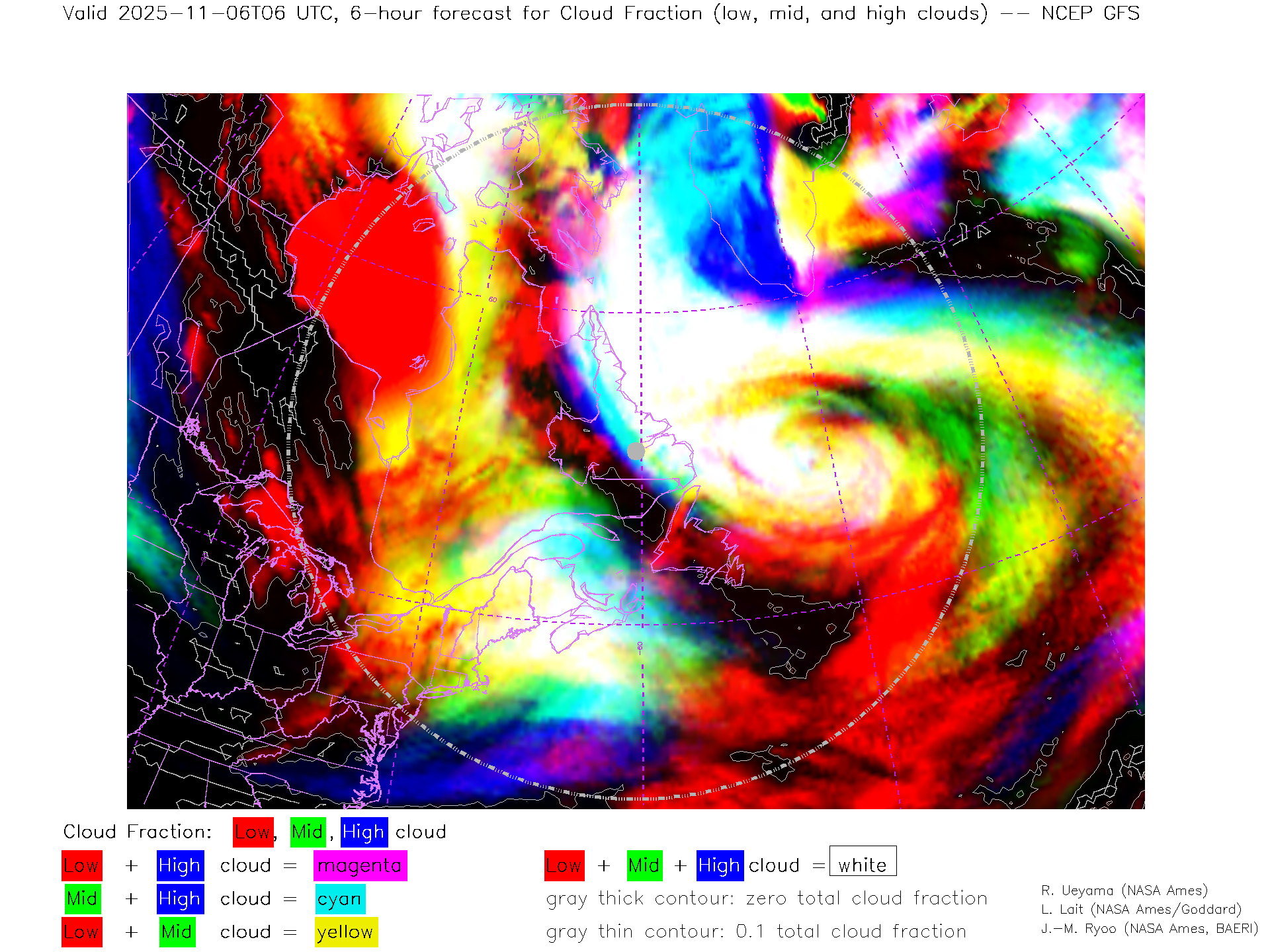 NCEP GFS Forecast Low-, Mid- and High-level Cloud Fraction