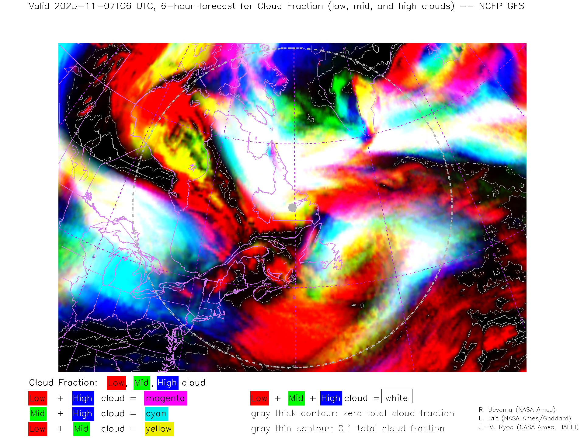 NCEP GFS Forecast Low-, Mid- and High-level Cloud Fraction