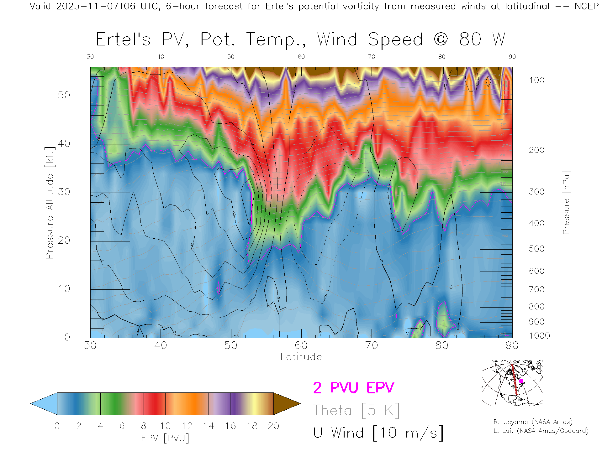 NCEP GFS Forecast PV X-Section (80 W)
