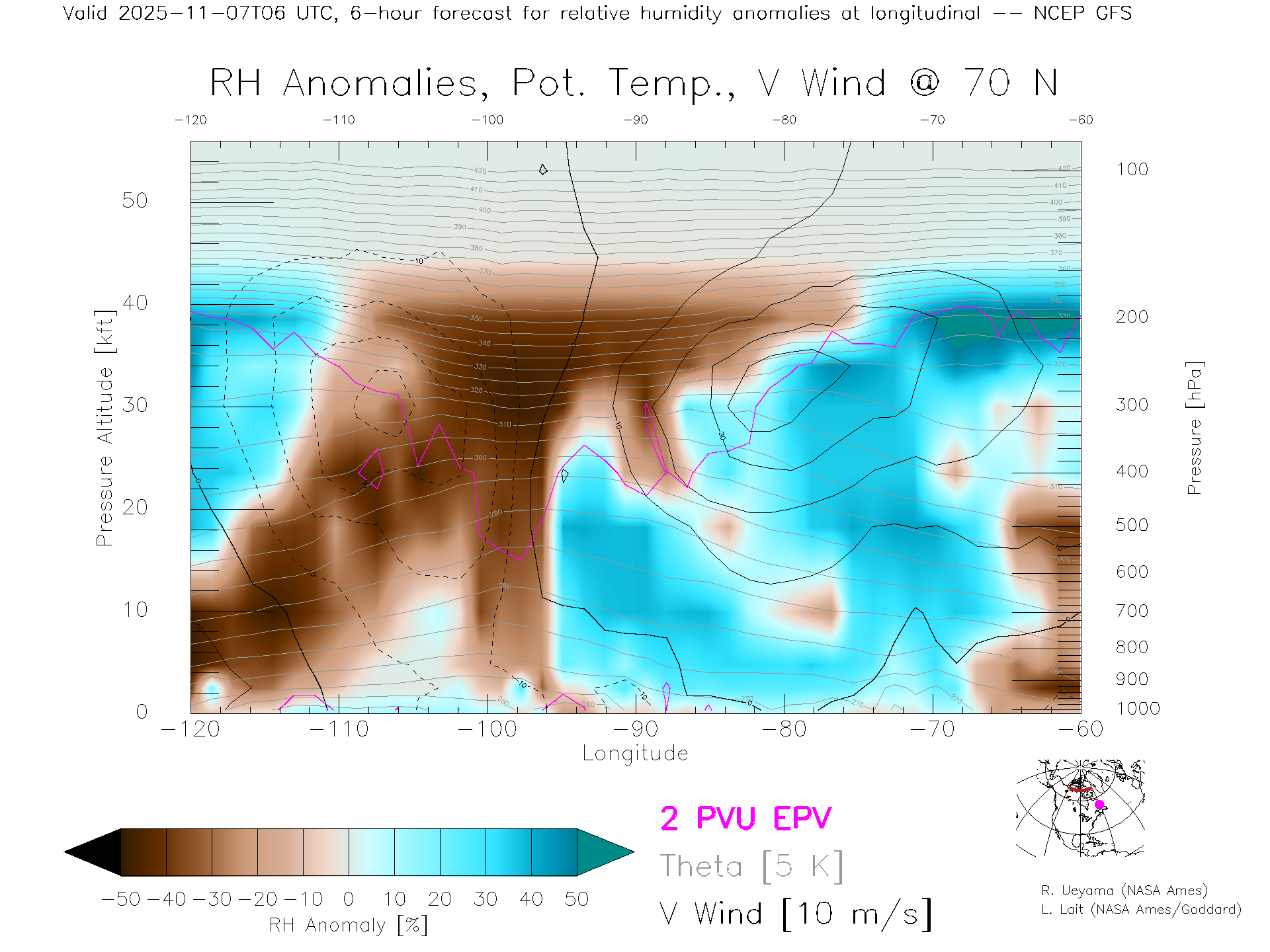 NCEP GFS Forecast Rel. Hum. X-Section (70 N)