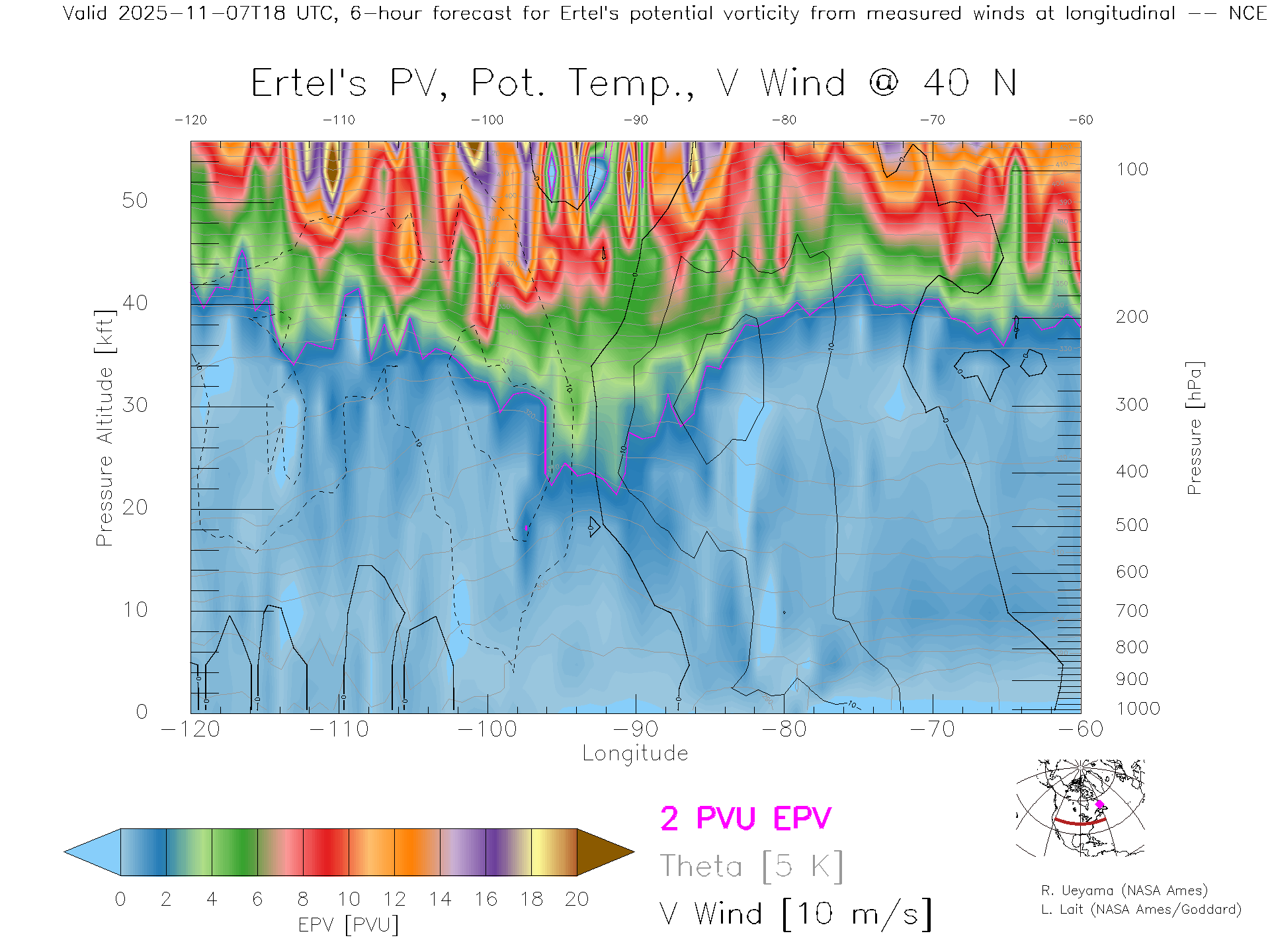 NCEP GFS Forecast PV X-Section (40 N)