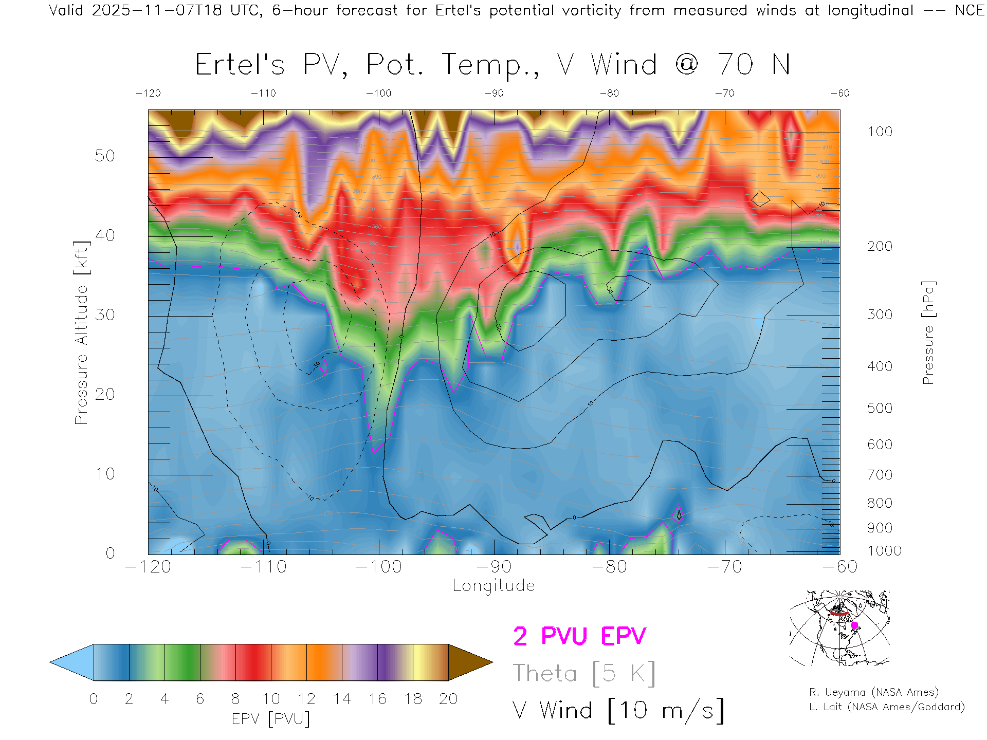 NCEP GFS Forecast PV X-Section (70 N)