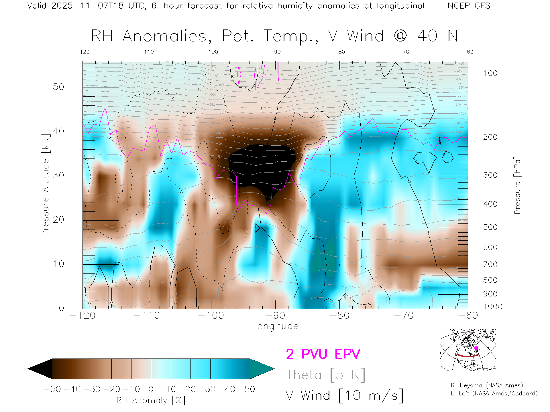 NCEP GFS Forecast Rel. Hum. X-Section (40 N)