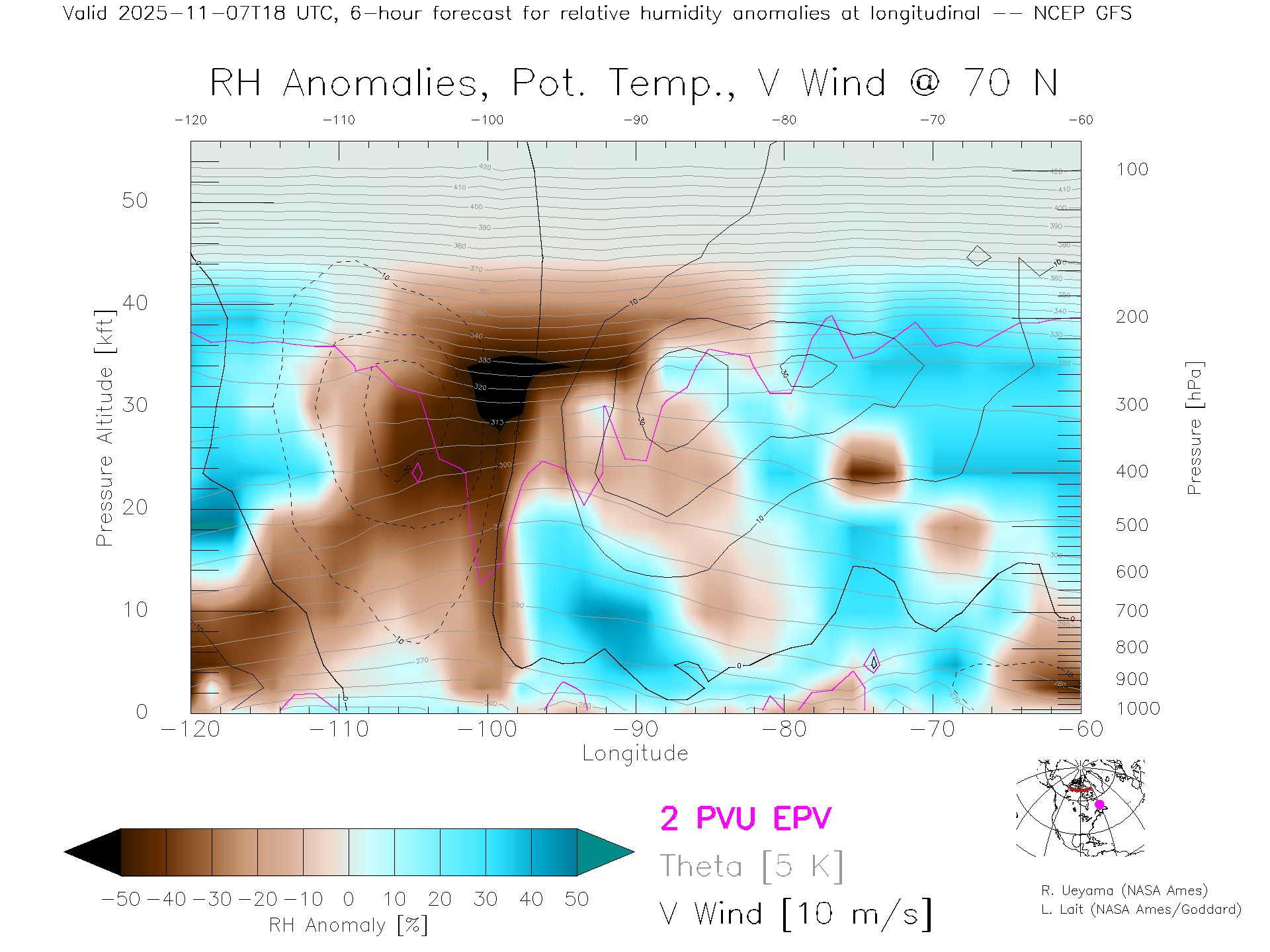 NCEP GFS Forecast Rel. Hum. X-Section (70 N)