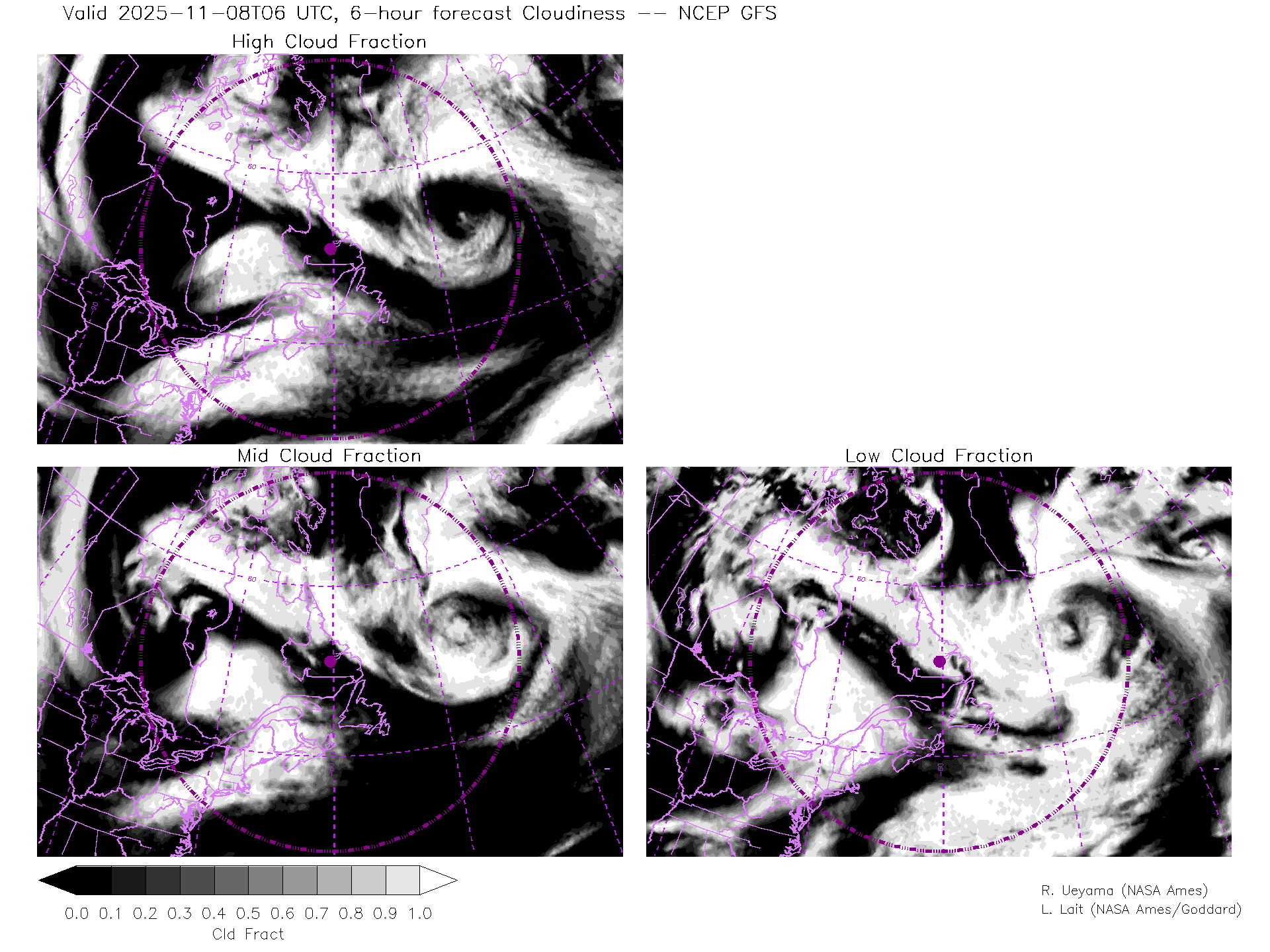 NCEP GFS Forecast Cloud Fraction (High, Mid, Low)