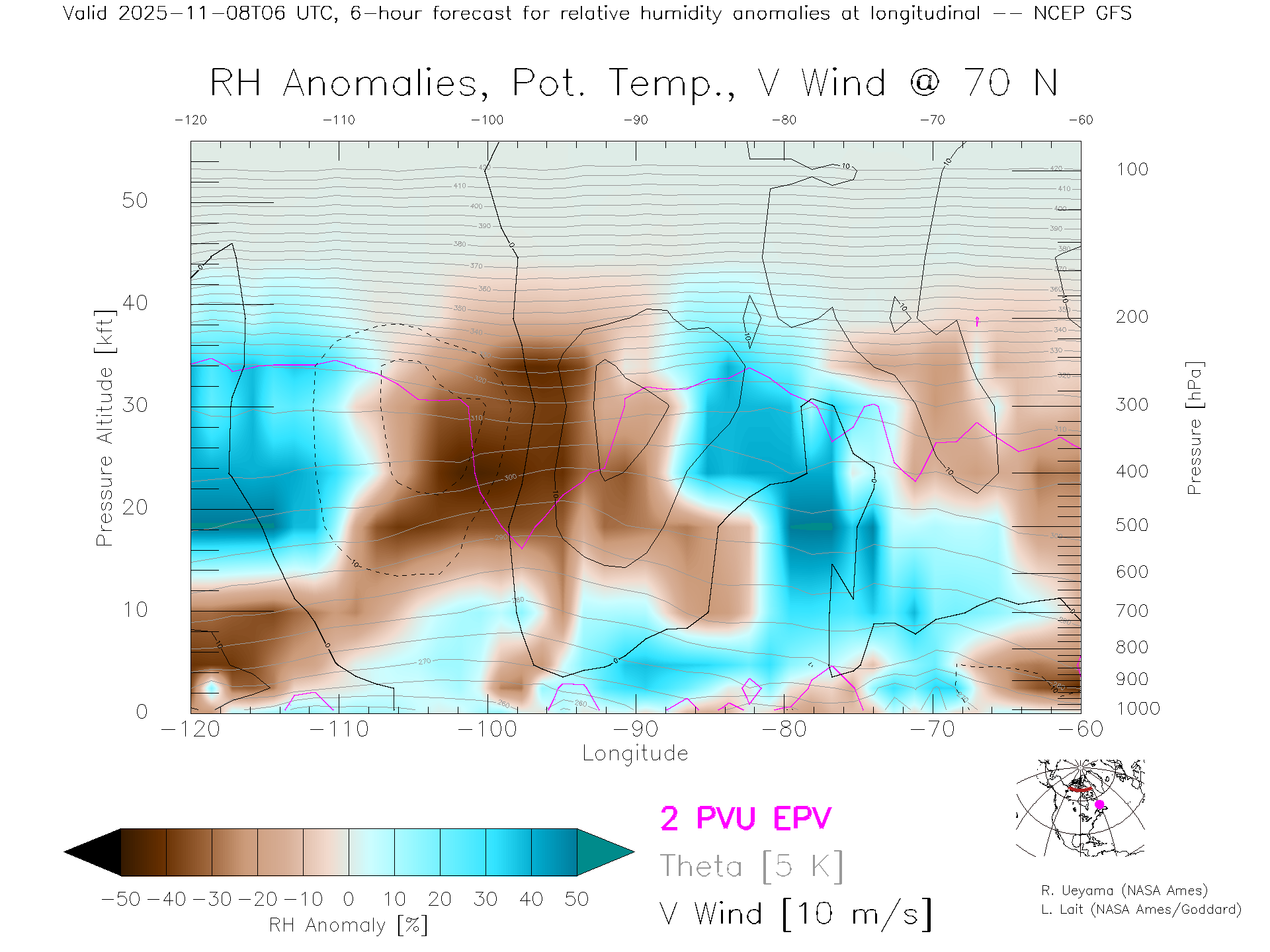 NCEP GFS Forecast Rel. Hum. X-Section (70 N)