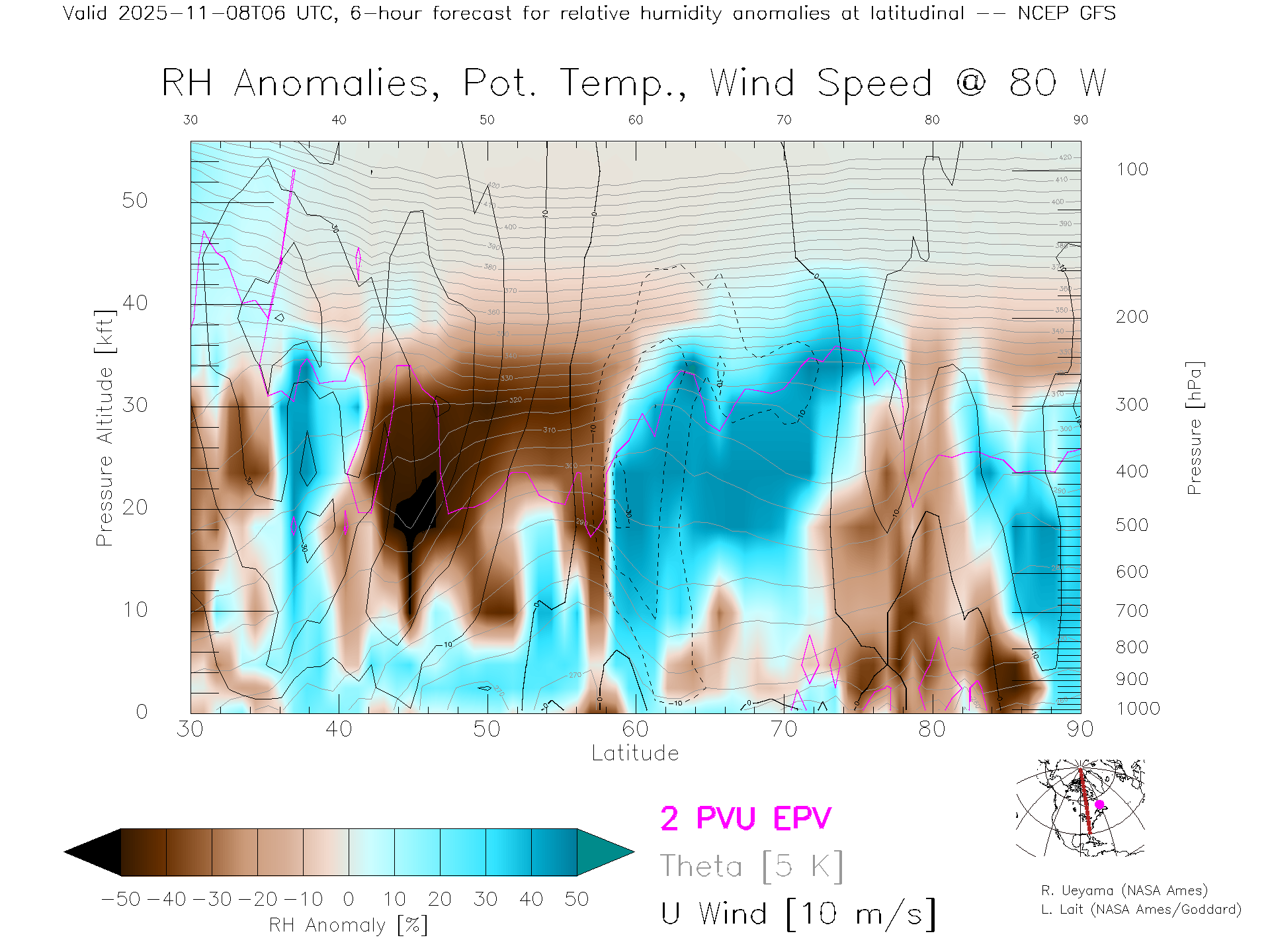 NCEP GFS Forecast Rel. Hum. X-Section (80 W)