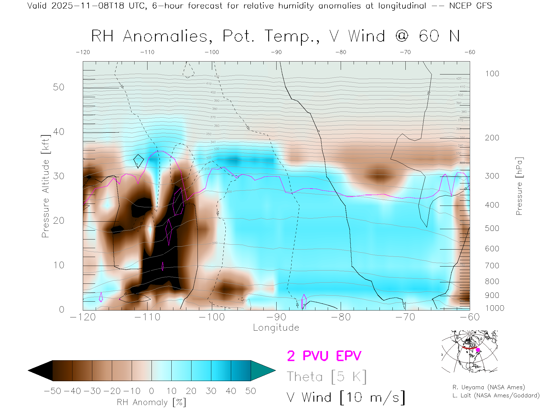 NCEP GFS Forecast Rel. Hum. X-Section (60 N)