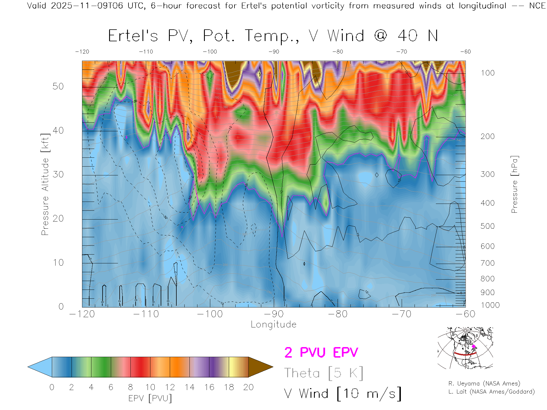 NCEP GFS Forecast PV X-Section (40 N)