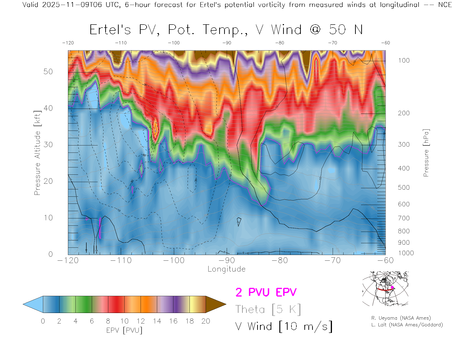 NCEP GFS Forecast PV X-Section (50 N)