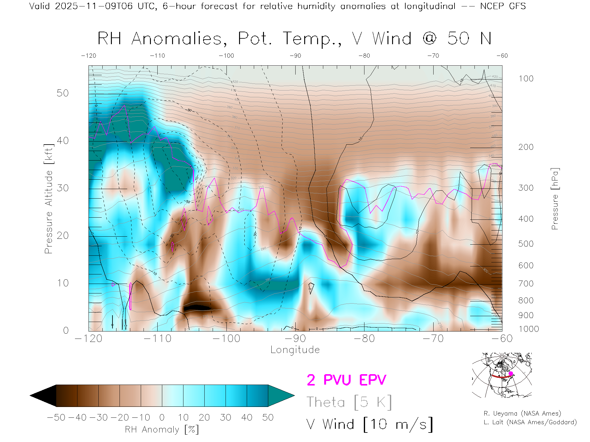 NCEP GFS Forecast Rel. Hum. X-Section (50 N)