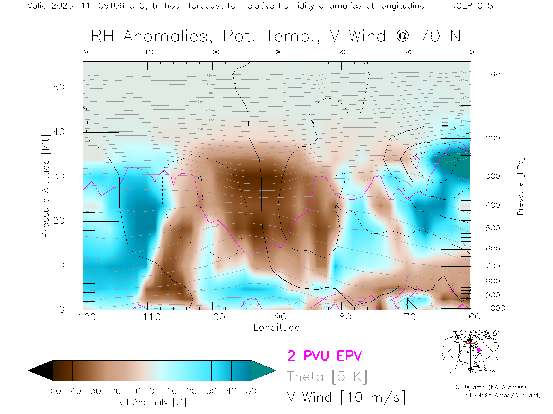 NCEP GFS Forecast Rel. Hum. X-Section (70 N)