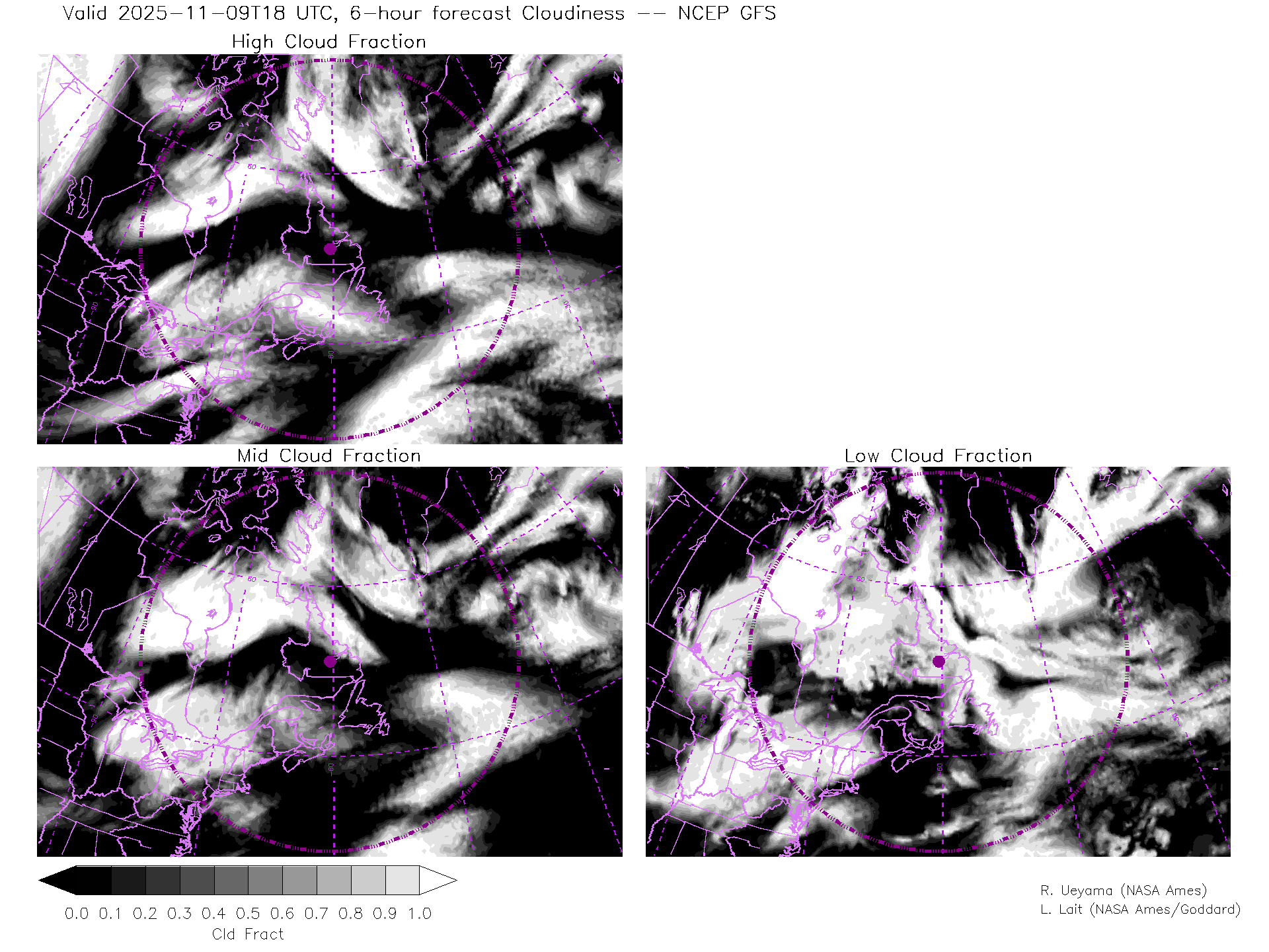 NCEP GFS Forecast Cloud Fraction (High, Mid, Low)