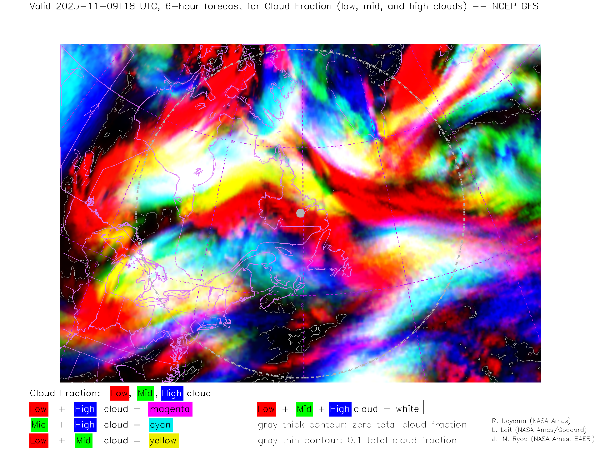 NCEP GFS Forecast Low-, Mid- and High-level Cloud Fraction