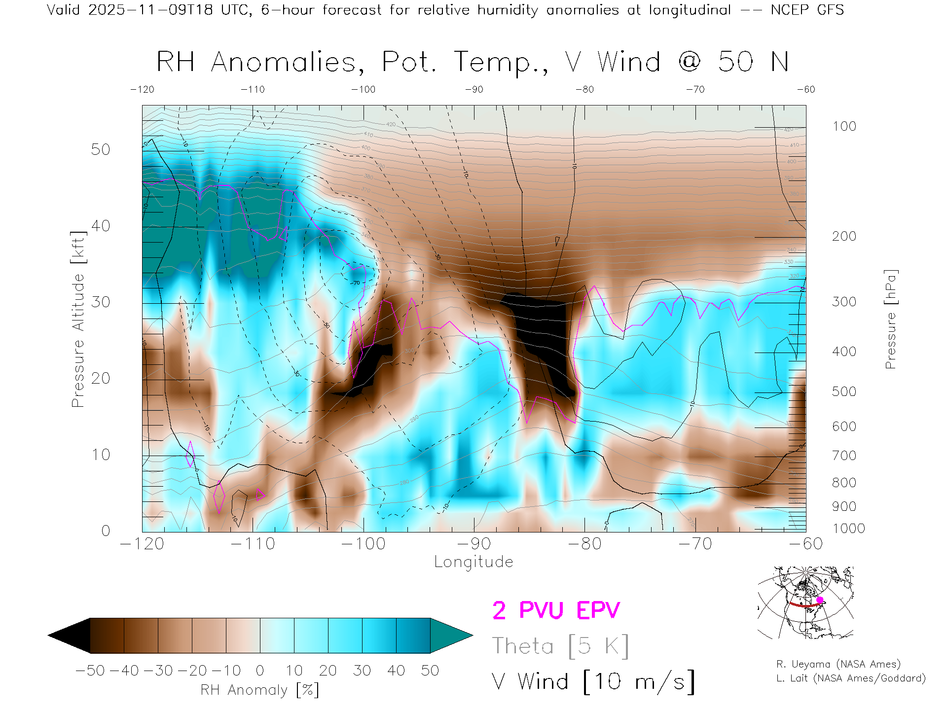 NCEP GFS Forecast Rel. Hum. X-Section (50 N)