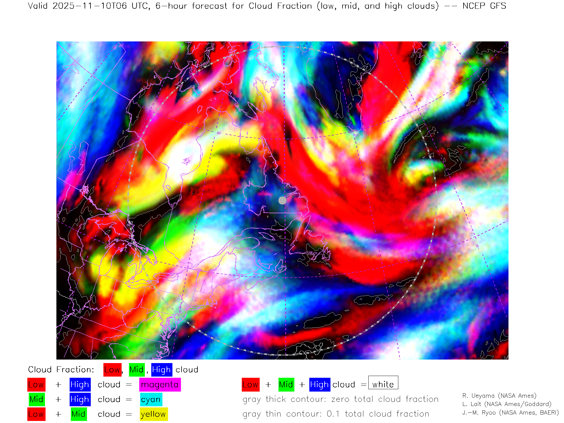 NCEP GFS Forecast Low-, Mid- and High-level Cloud Fraction