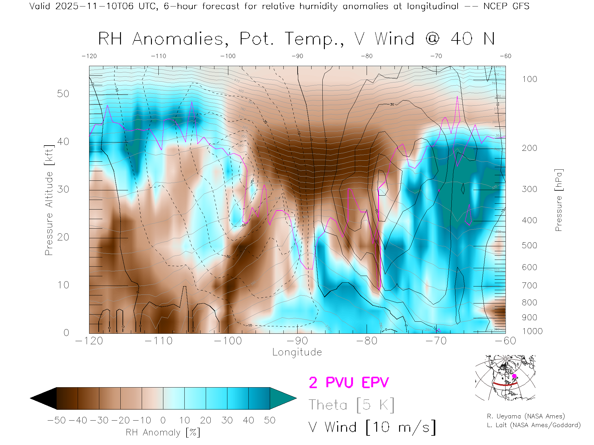 NCEP GFS Forecast Rel. Hum. X-Section (40 N)