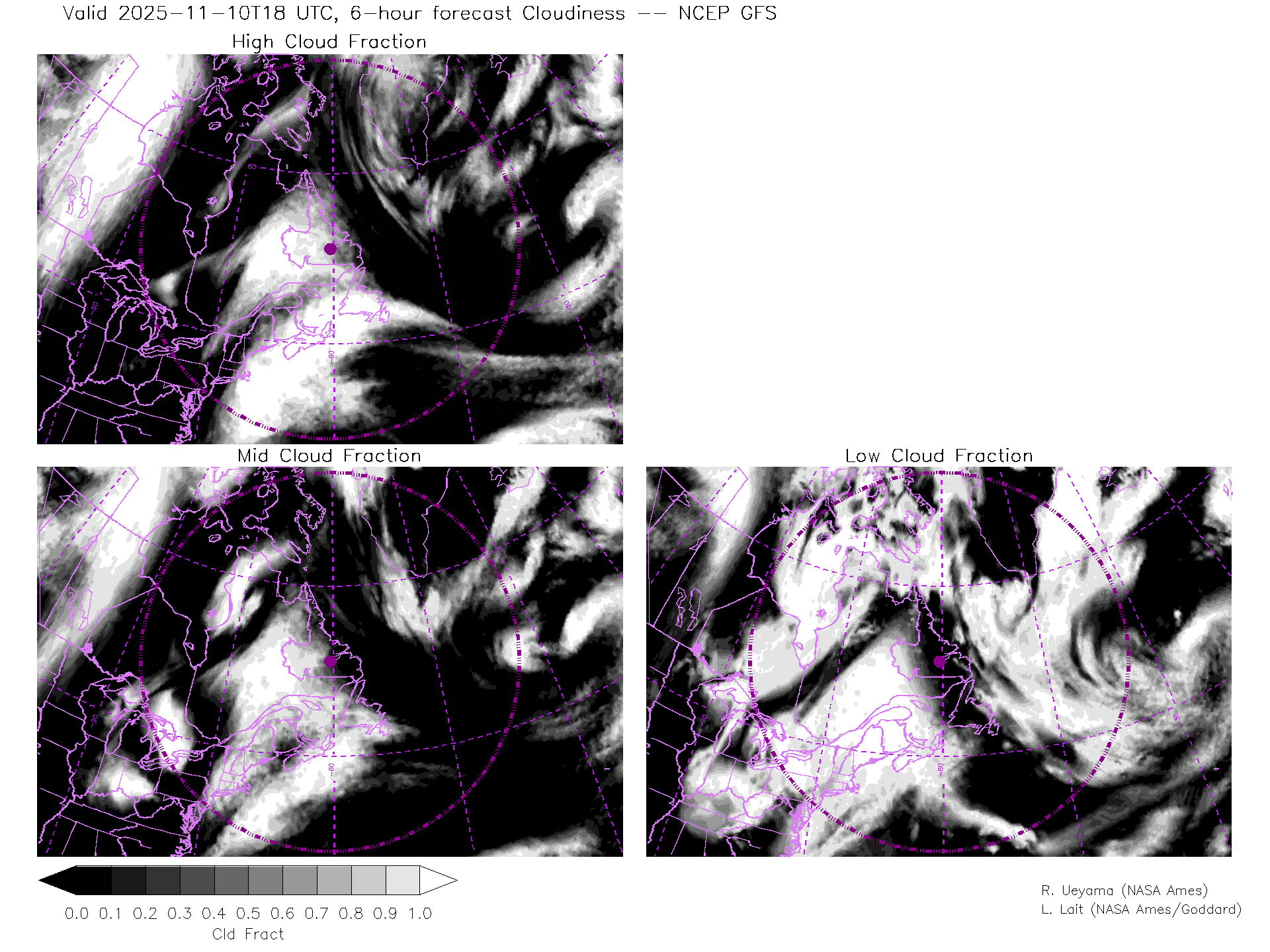 NCEP GFS Forecast Cloud Fraction (High, Mid, Low)