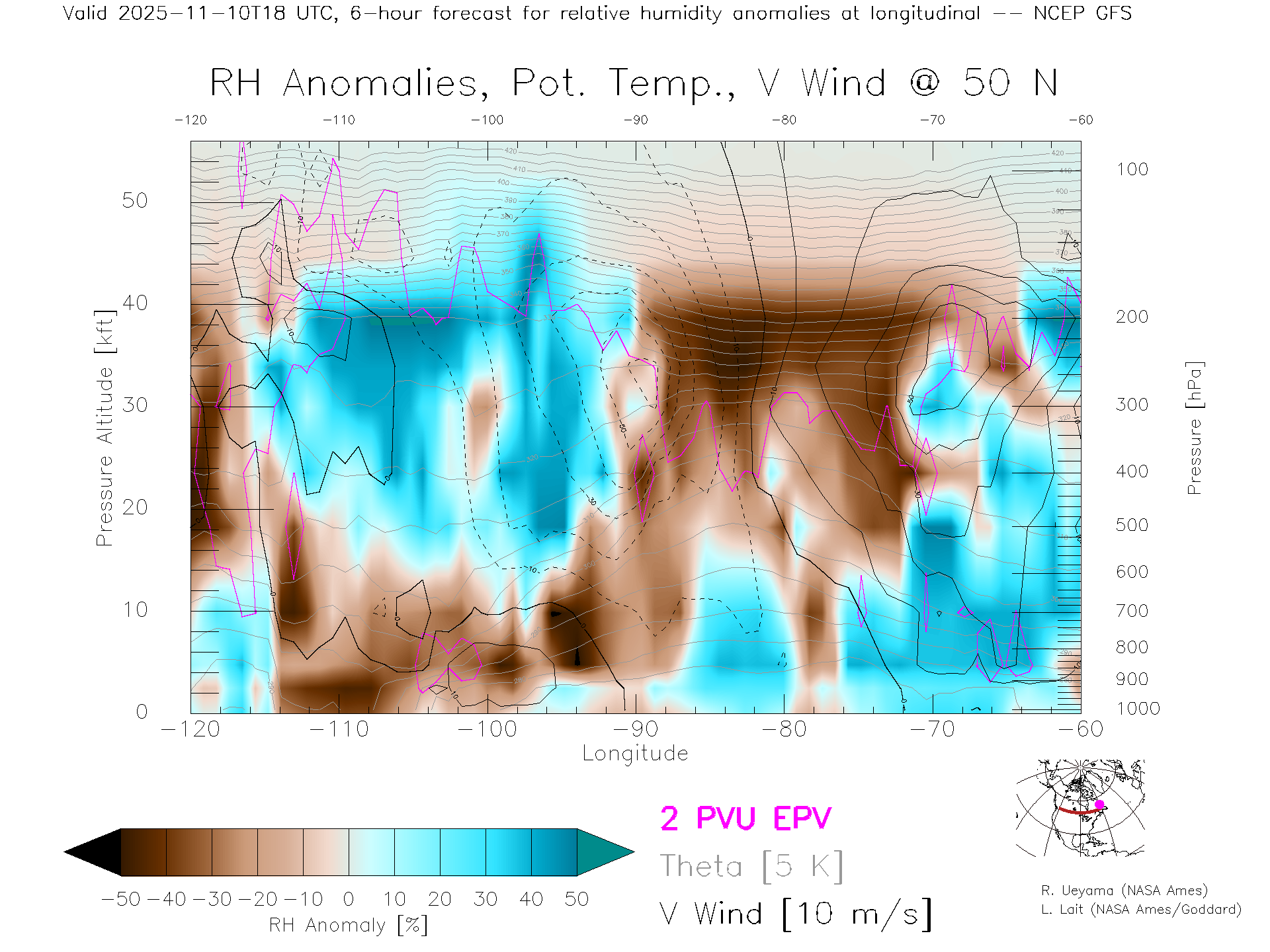 NCEP GFS Forecast Rel. Hum. X-Section (50 N)
