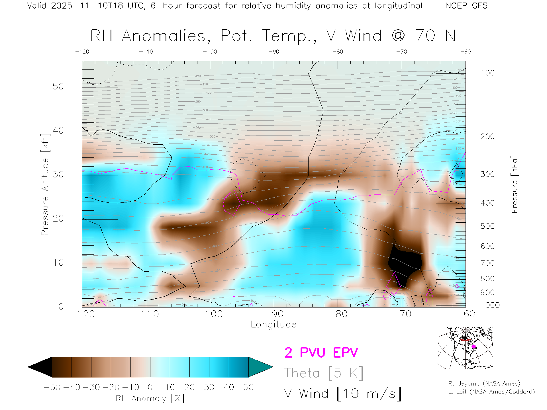 NCEP GFS Forecast Rel. Hum. X-Section (70 N)