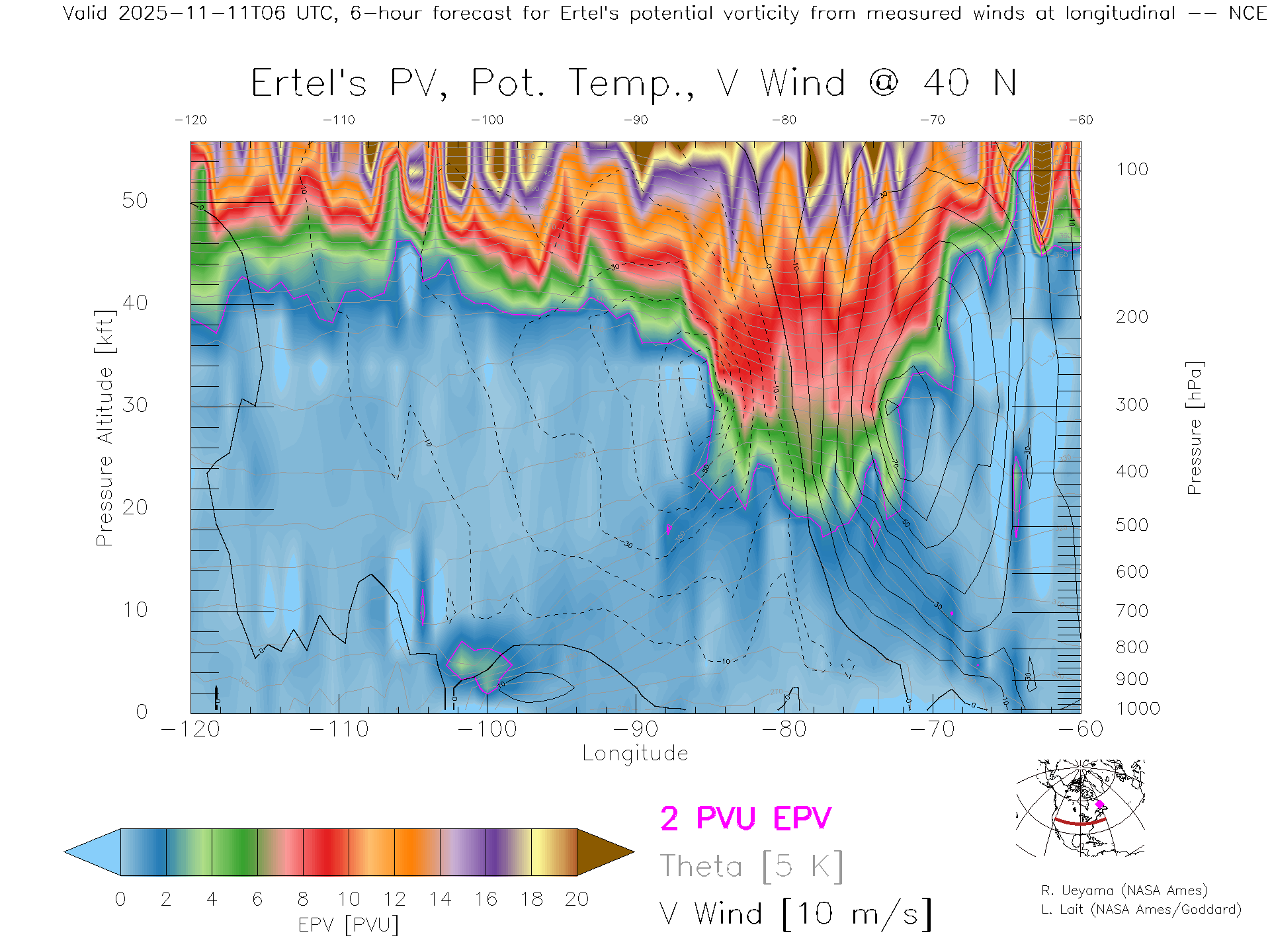 NCEP GFS Forecast PV X-Section (40 N)