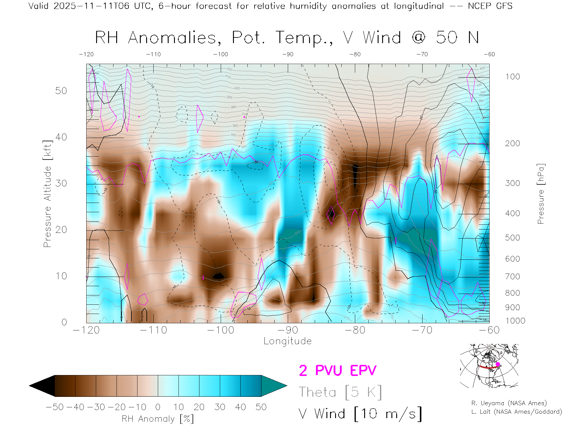 NCEP GFS Forecast Rel. Hum. X-Section (50 N)