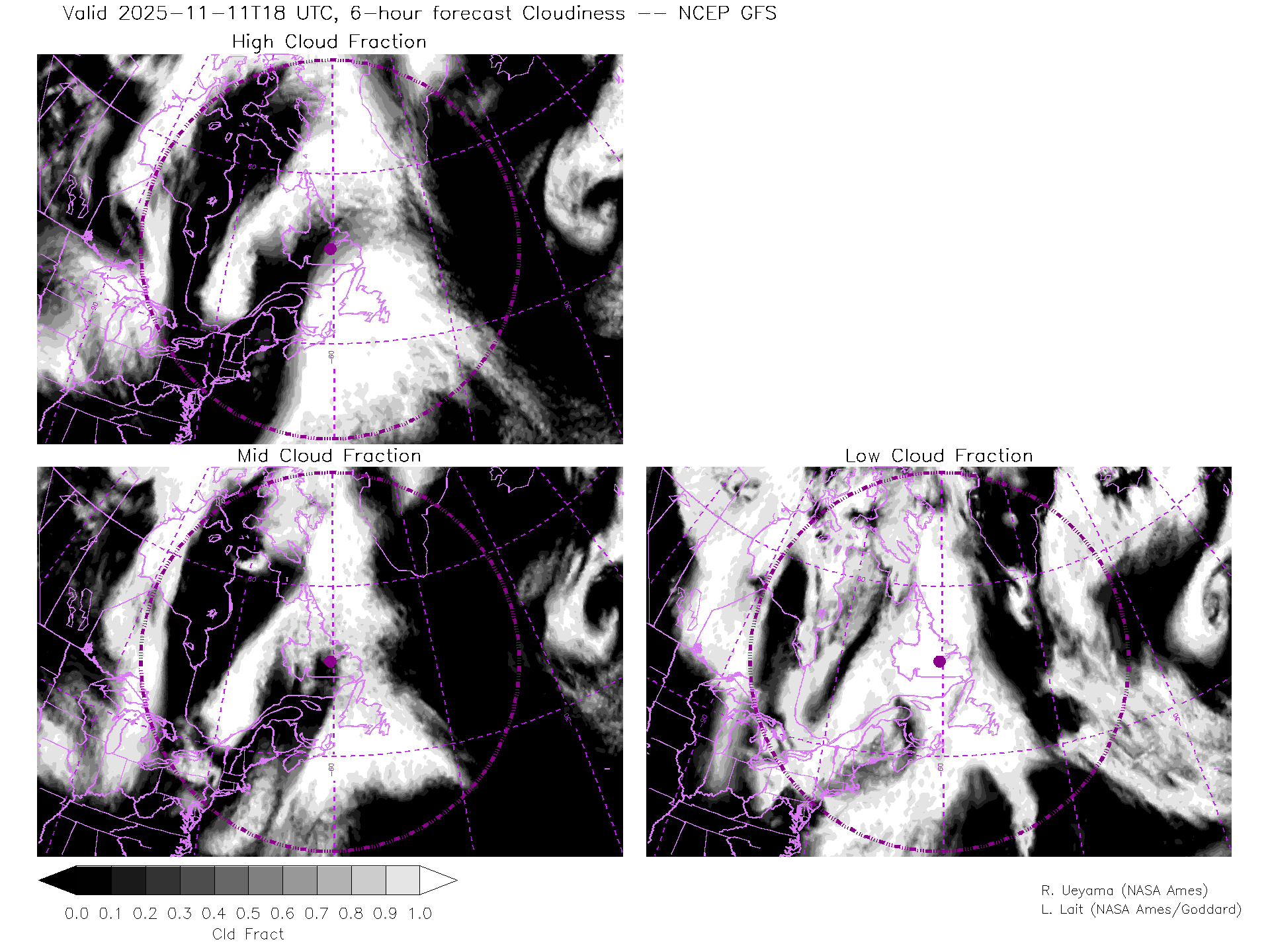 NCEP GFS Forecast Cloud Fraction (High, Mid, Low)