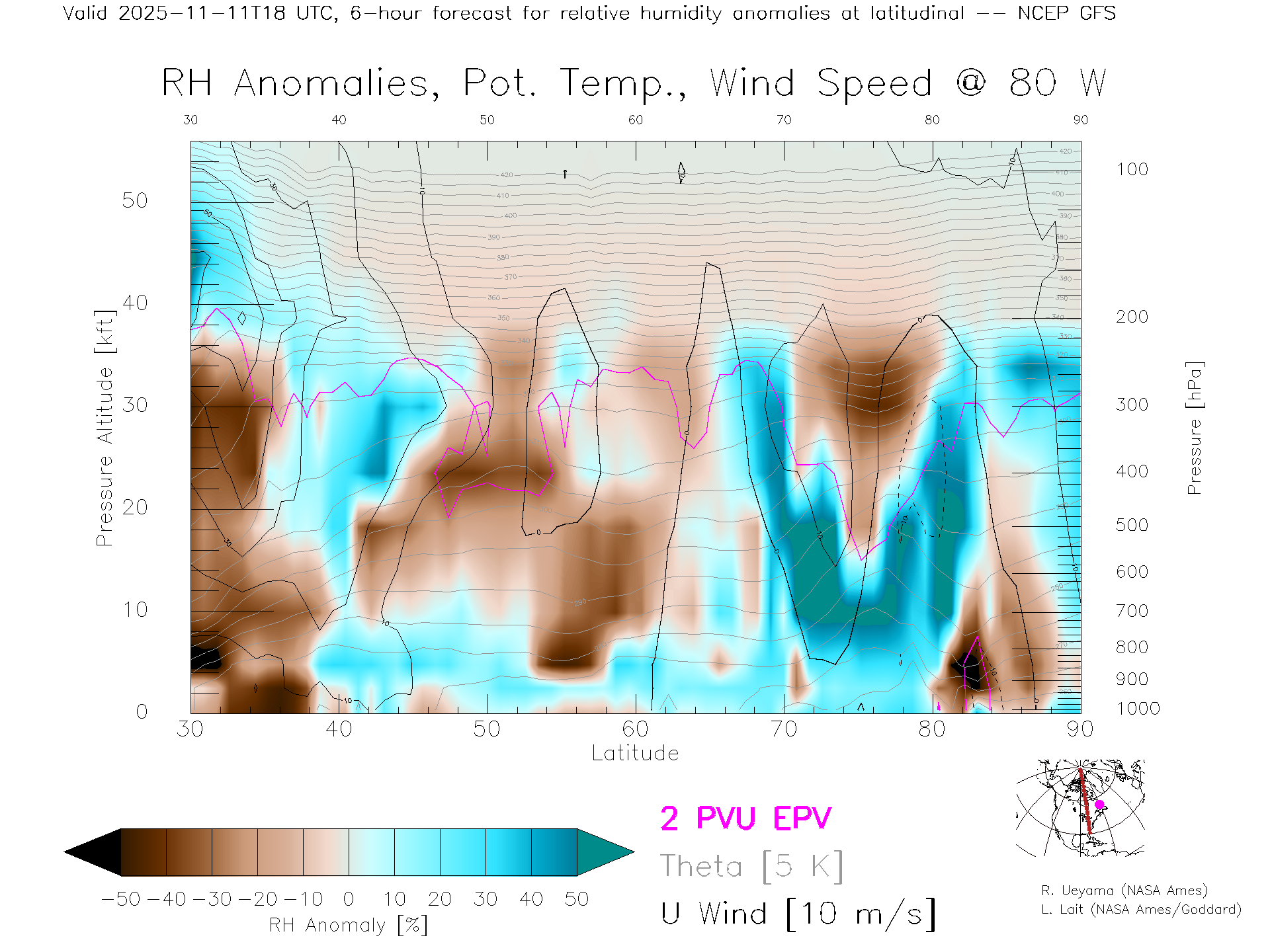 NCEP GFS Forecast Rel. Hum. X-Section (80 W)