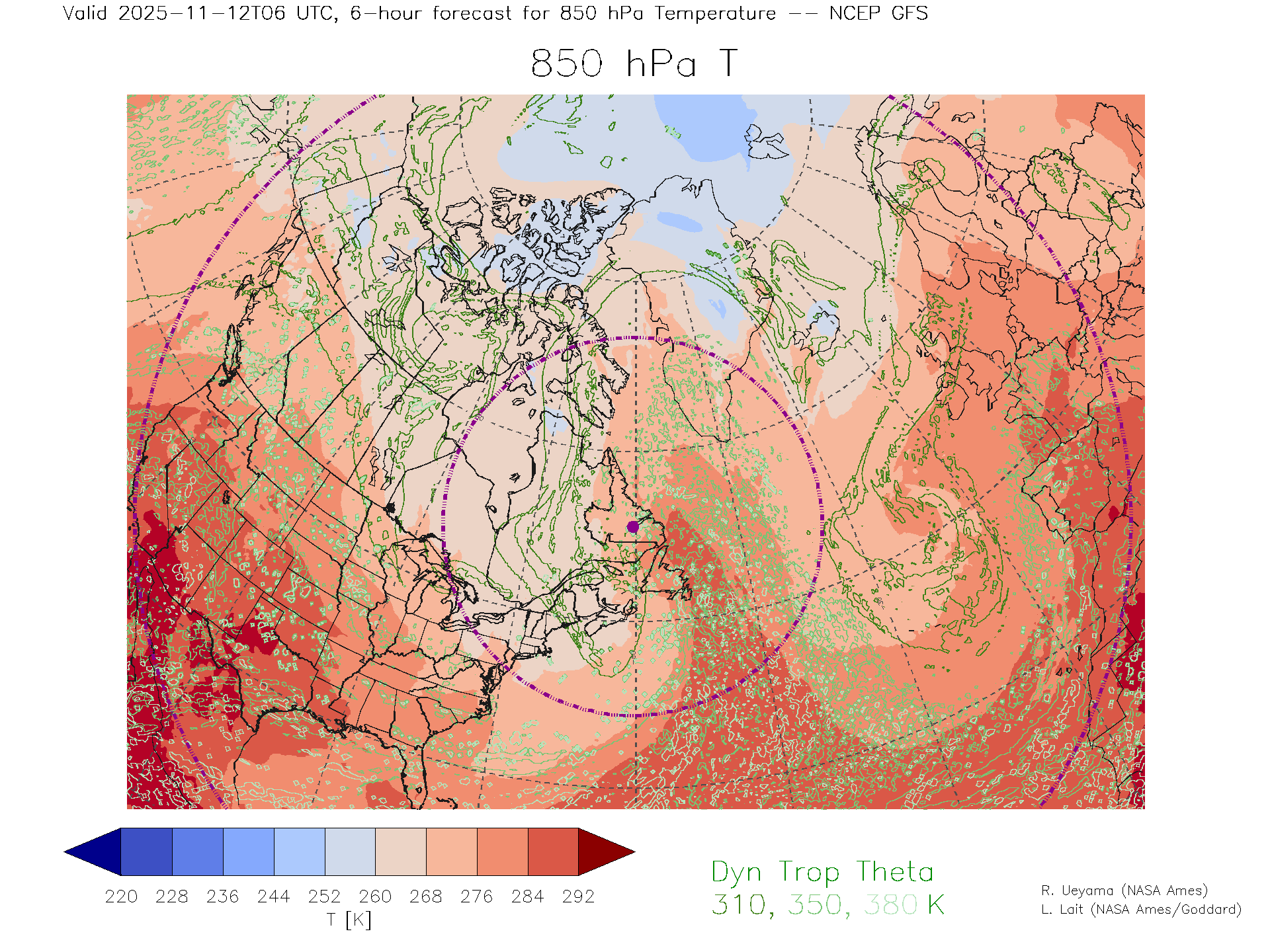 NCEP GFS Forecast 850 hPa Temp.
