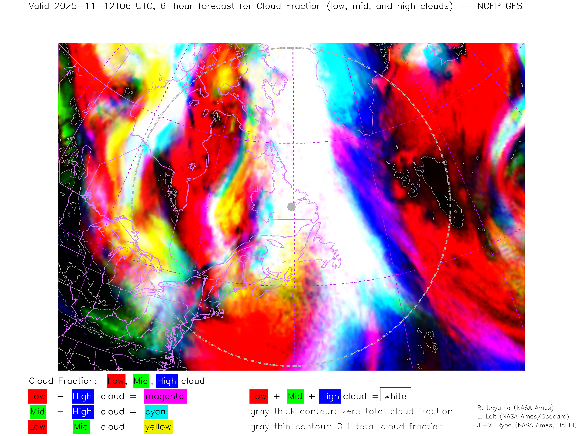 NCEP GFS Forecast Low-, Mid- and High-level Cloud Fraction