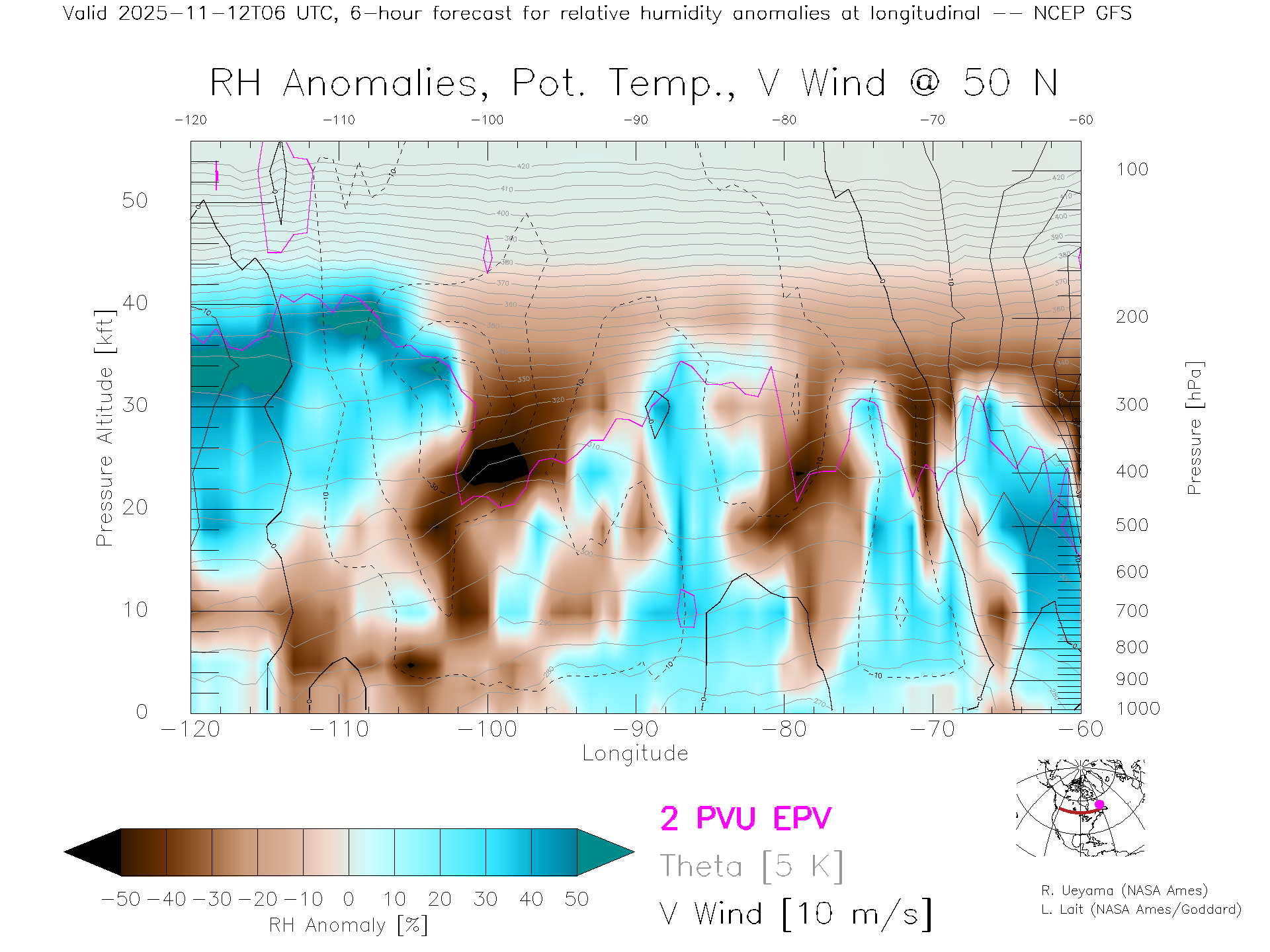 NCEP GFS Forecast Rel. Hum. X-Section (50 N)