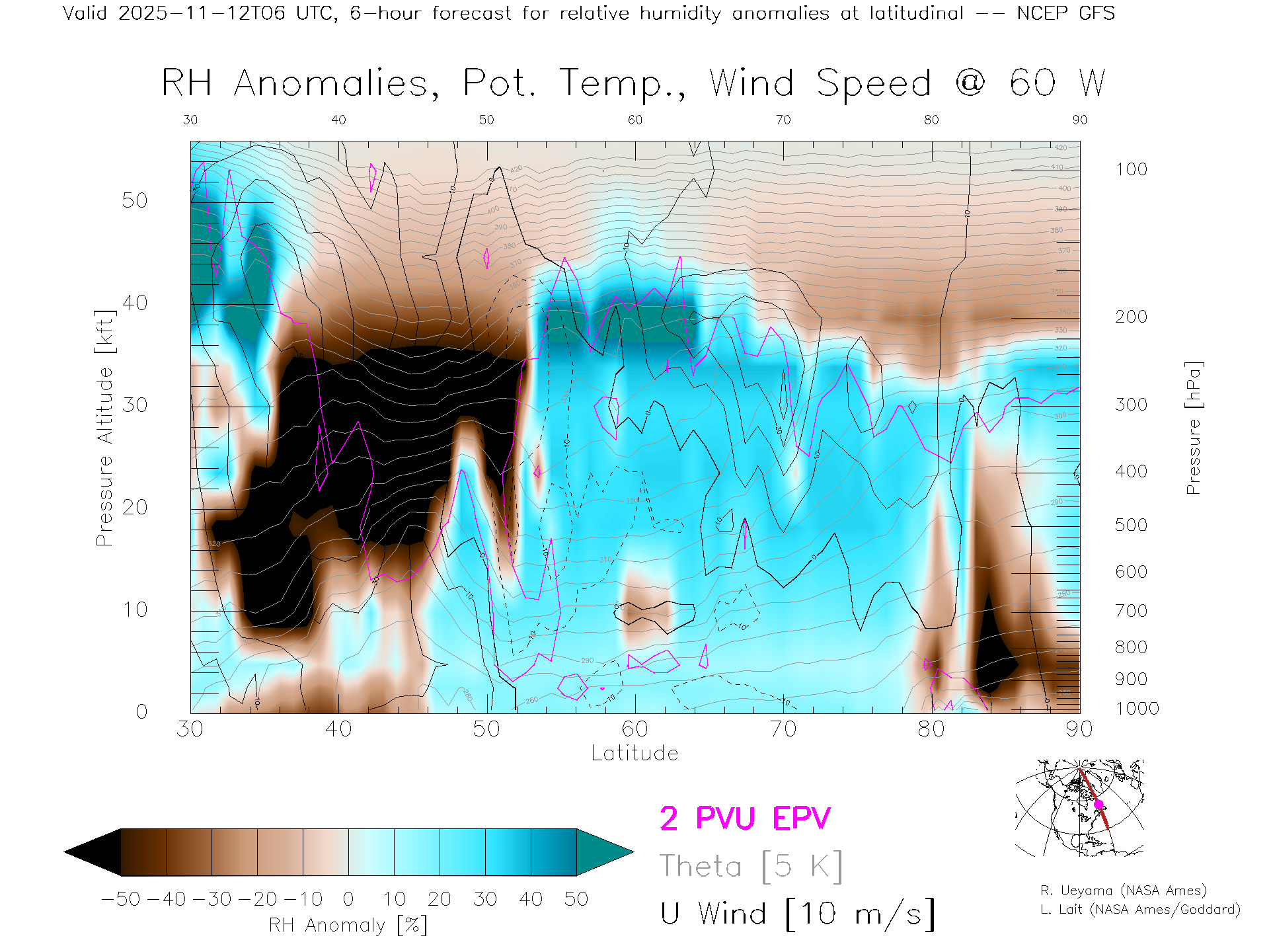 NCEP GFS Forecast Rel. Hum. X-Section (60 W)
