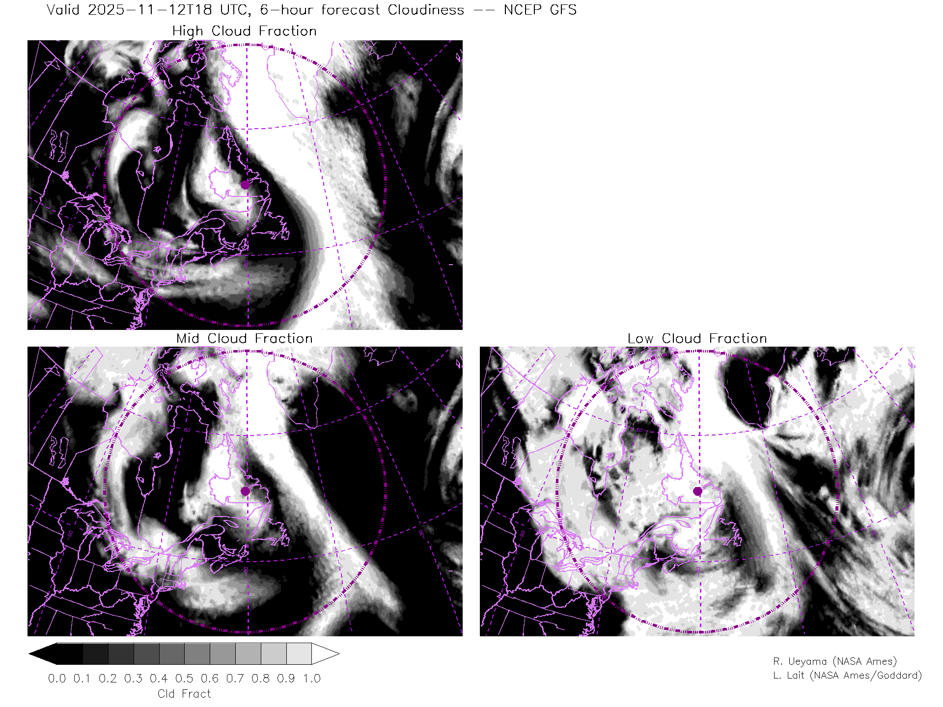 NCEP GFS Forecast Cloud Fraction (High, Mid, Low)
